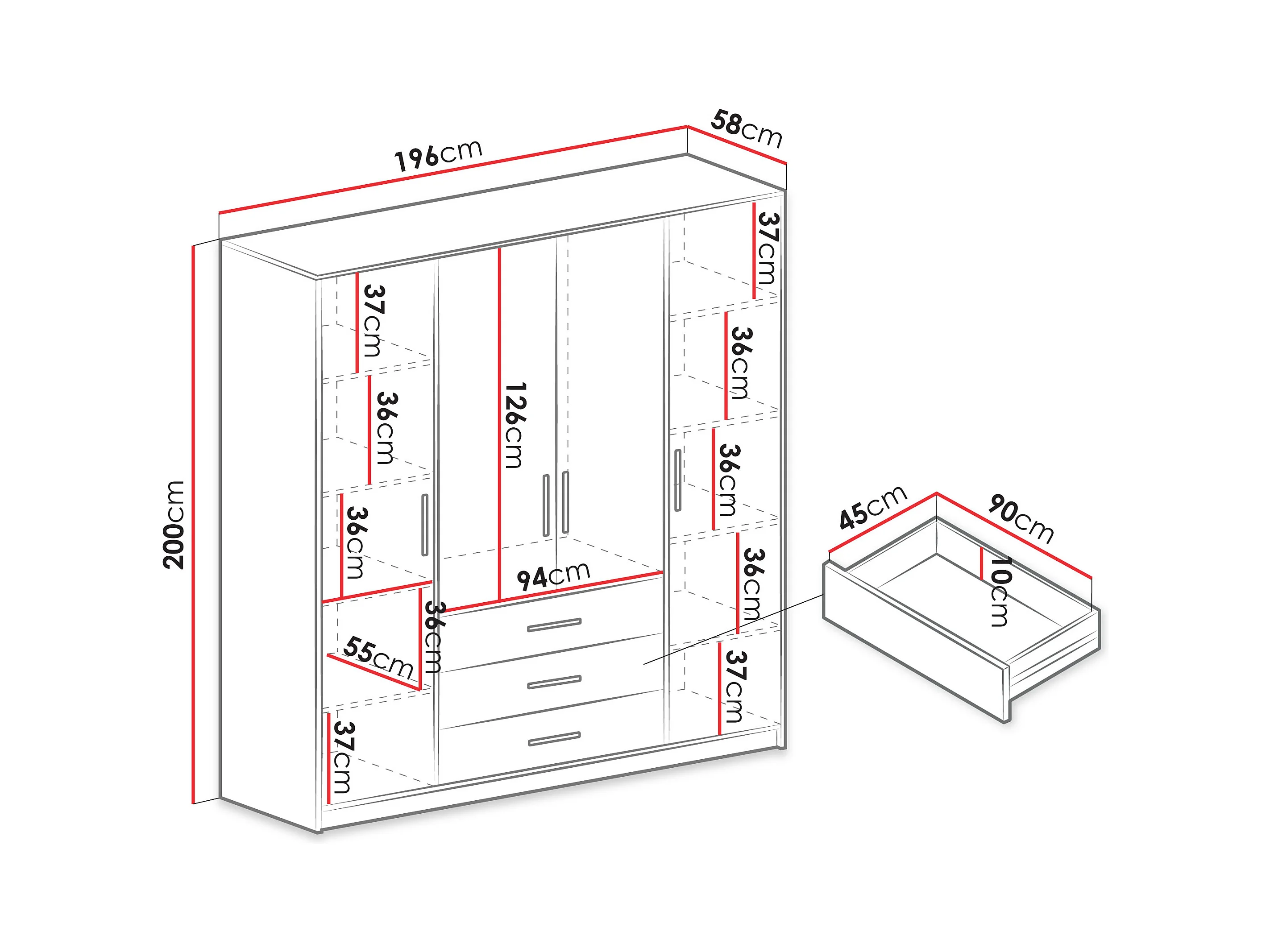 Roupeiro Dover 111, Número de prateleiras: 2, 21x14x6cm