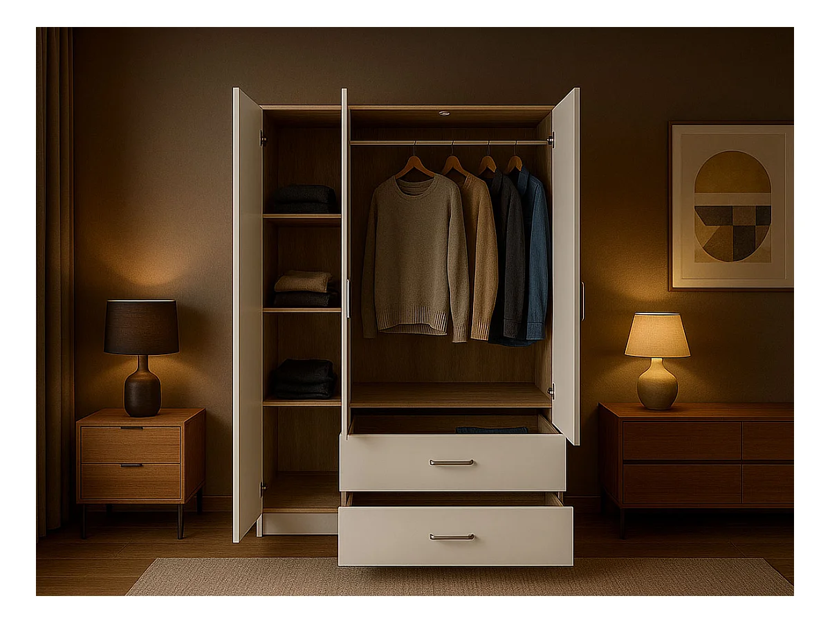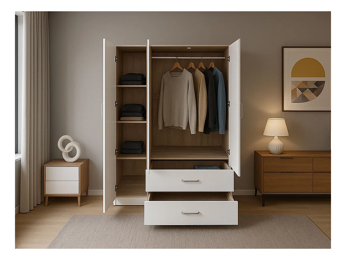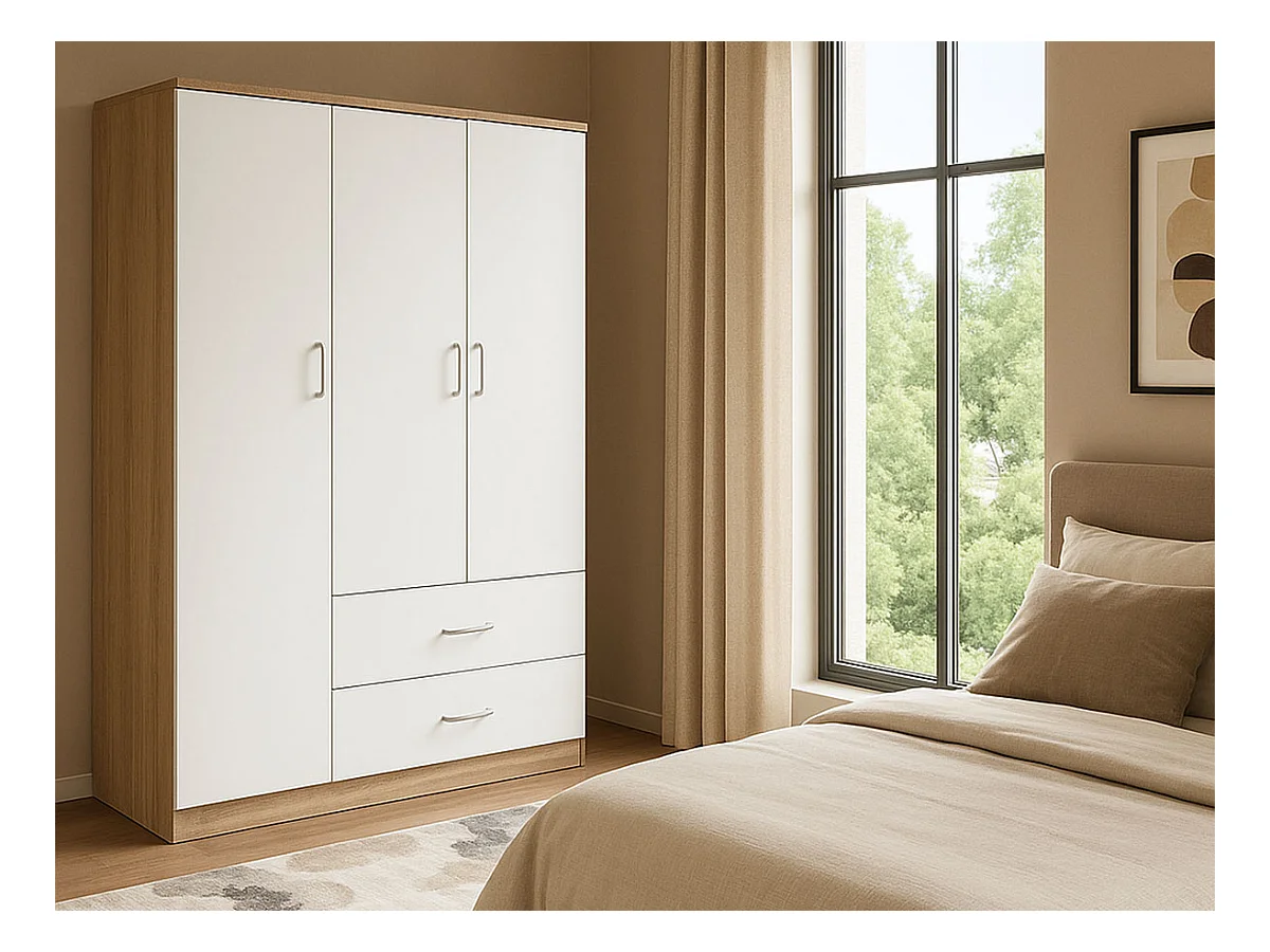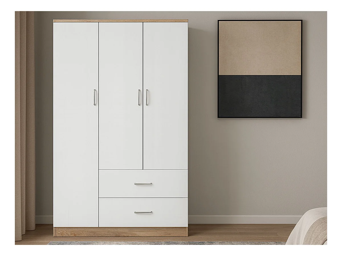 Roupeiro Milan Branco, Carvalho Claro)(3 Portas de Abrir, 2 Gavetas)
