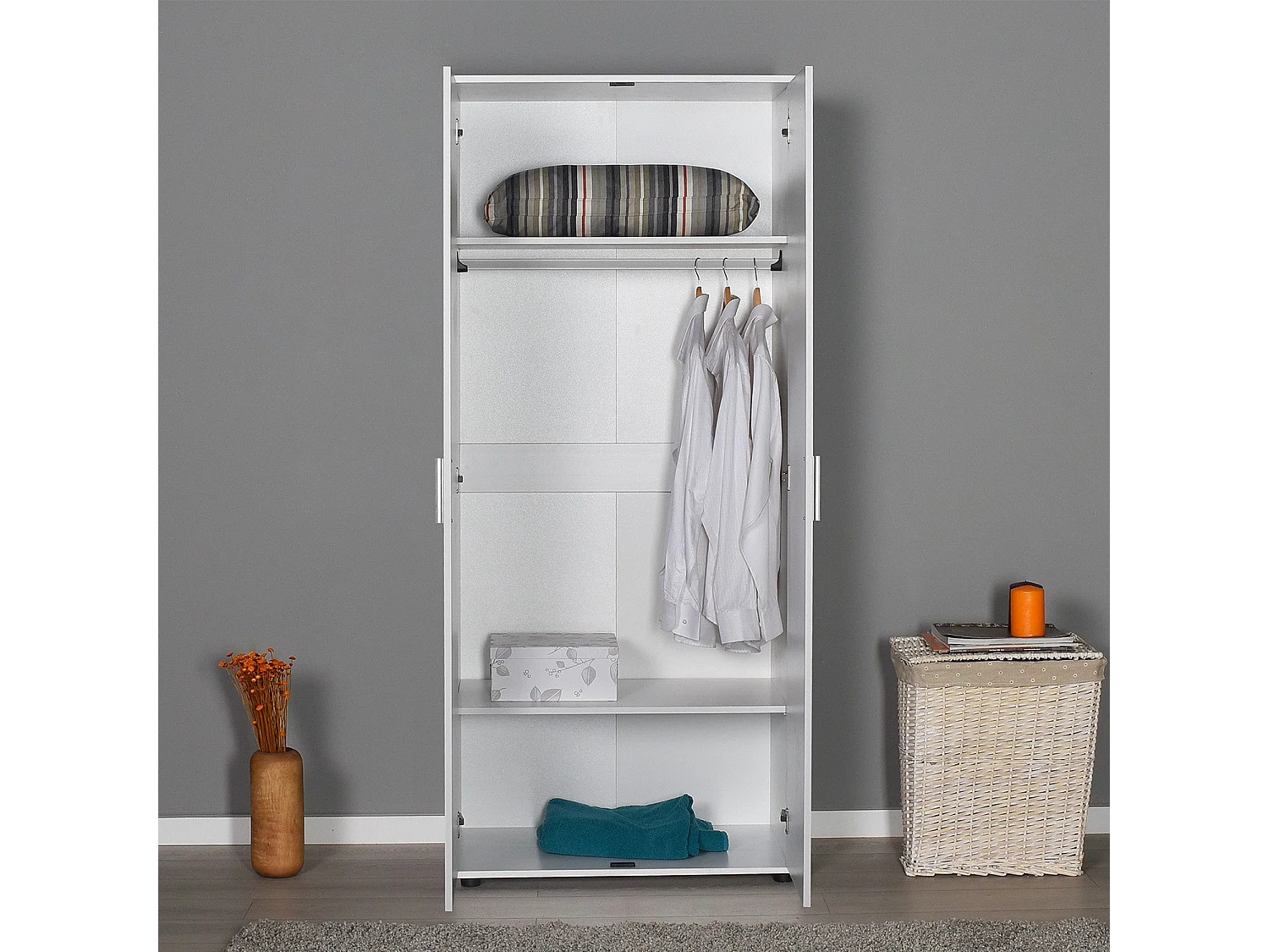 Roupeiro Moderno "Aurelio" em Branco - 80 x 187 x 47 cm para Quarto Elegante