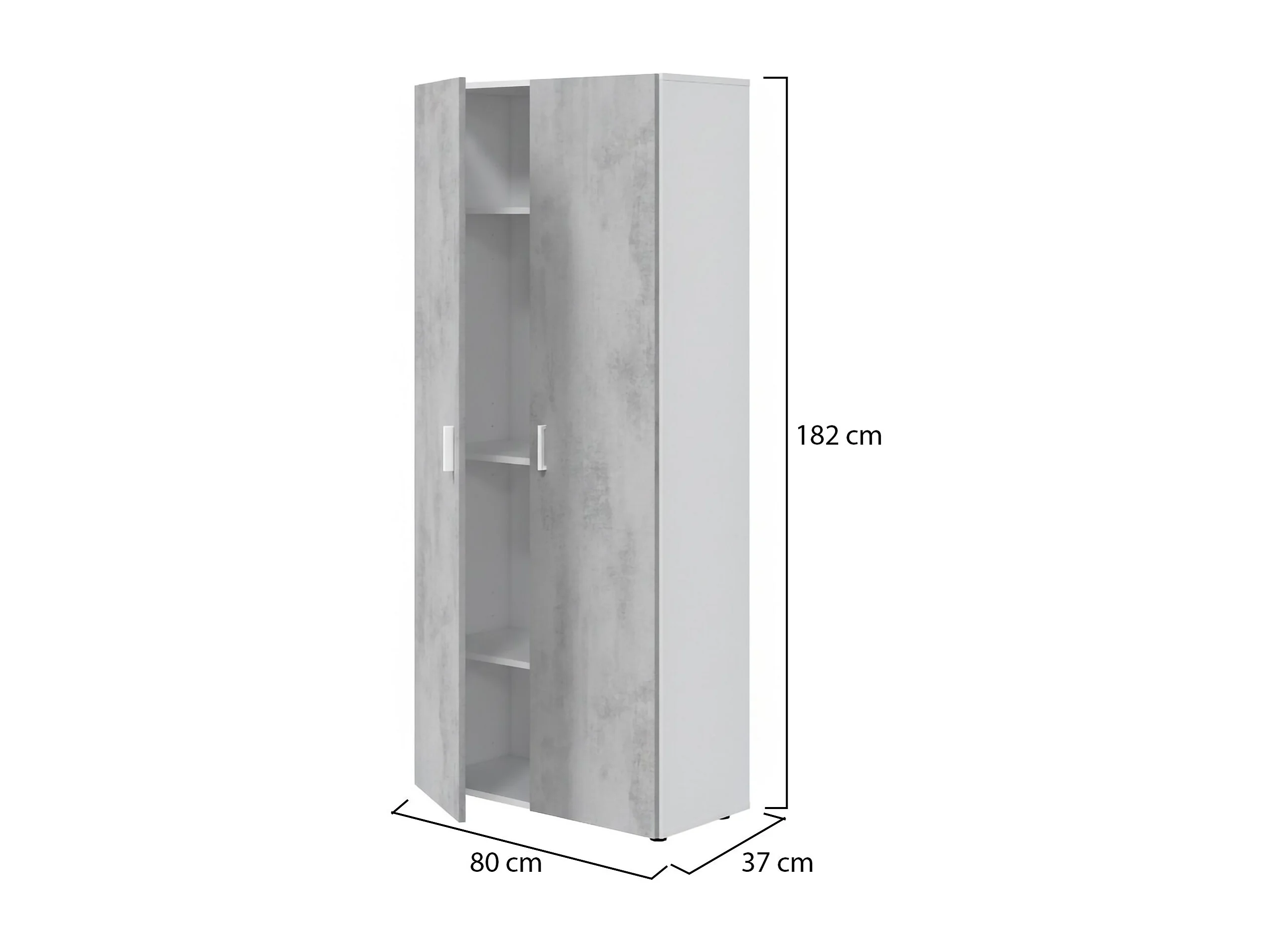 Roupeiro multiusos Dferre, Armário auxiliar com 2 portas, Armário de vassouras com 2 portas e 3 prateleiras, 80x37h182 cm, Cimento e Branco