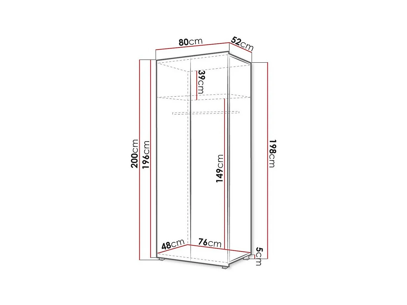 Roupeiro Tivdalu 125, Número de prateleiras: 1, 20x8x5cm