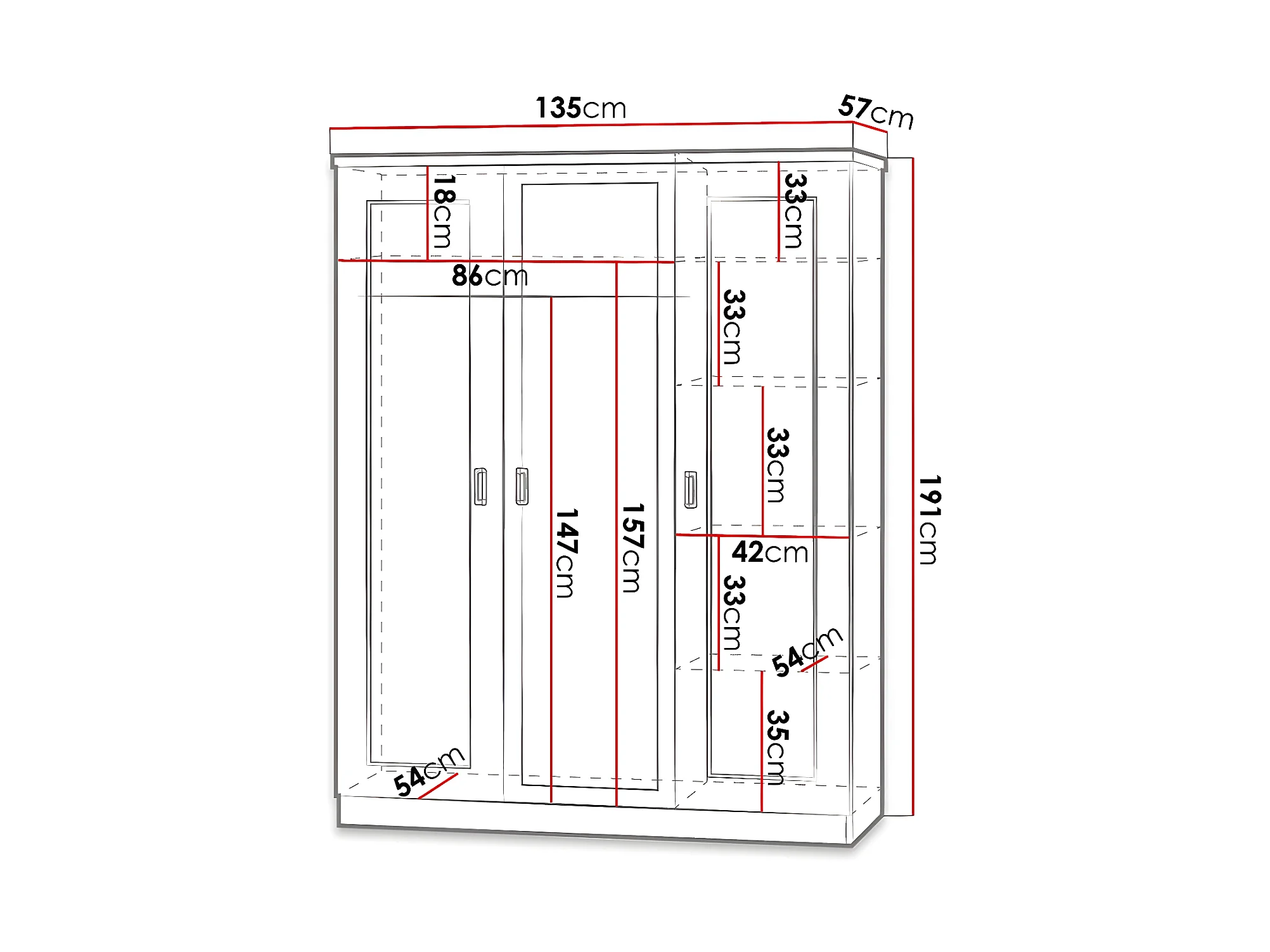Roupeiro Closico 140, Número de prateleiras: 5, 20x15x6cm