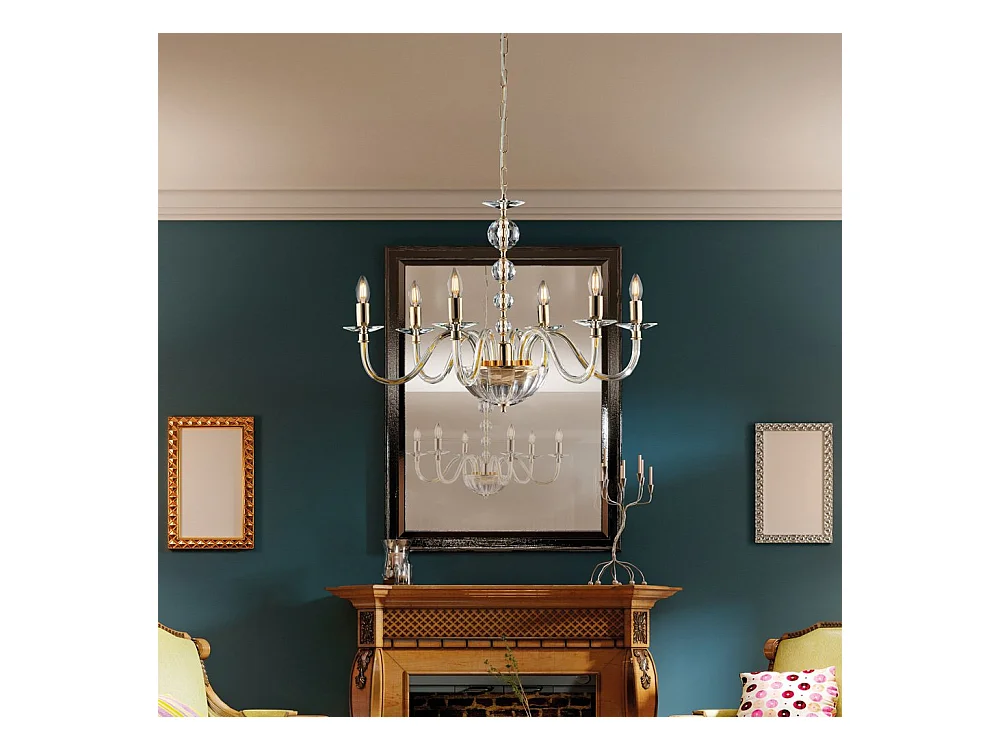 Franz - Lustre dourado com vidro transparente e strass 6 luzes 116 - Ø77 - BL275-6-OR