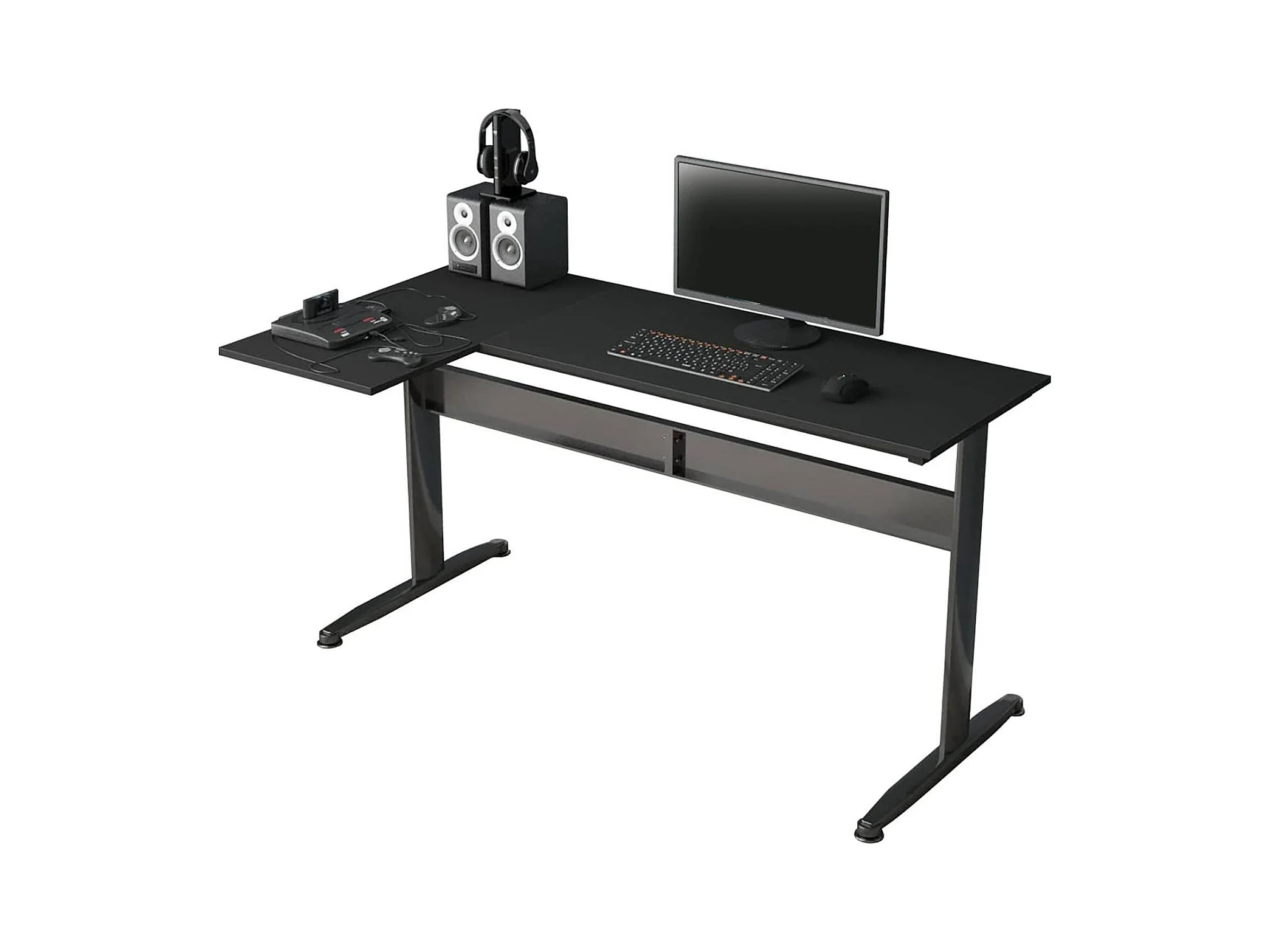 Descrivania DkarlSso, Mesa de trabalho multiusos, Mesa de escritório com suporte para PC, Bancada, 130x60h75 cm, Preto