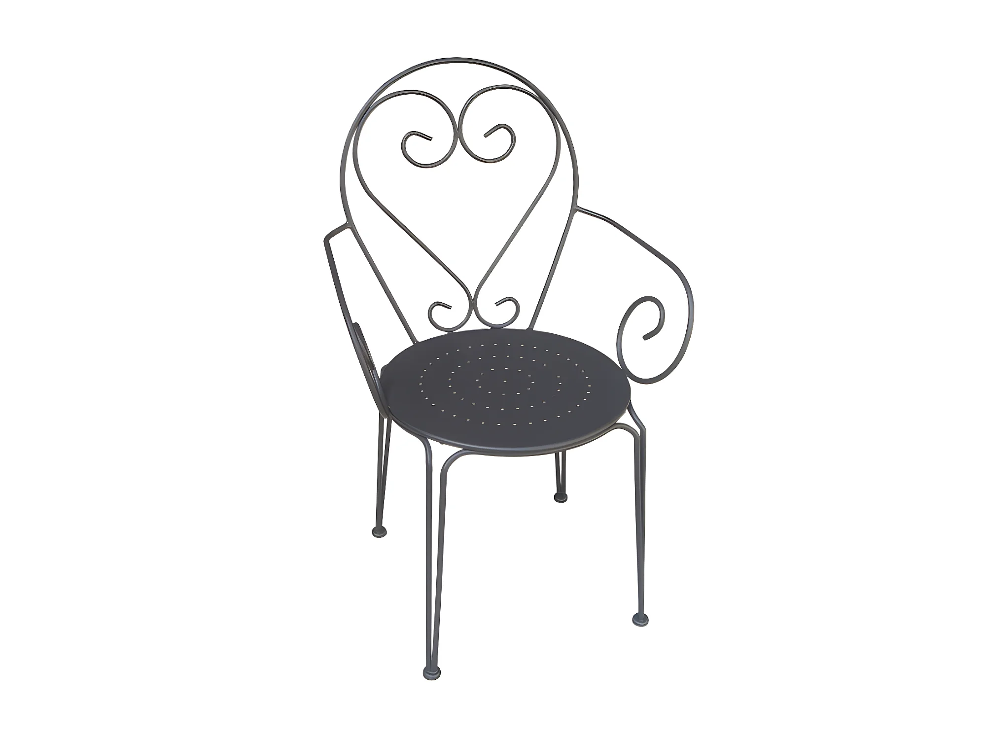 Sala de jantar de jardim em metal estilo ferro forjado: uma mesa e 4 cadeirões antracite - GUERMANTES