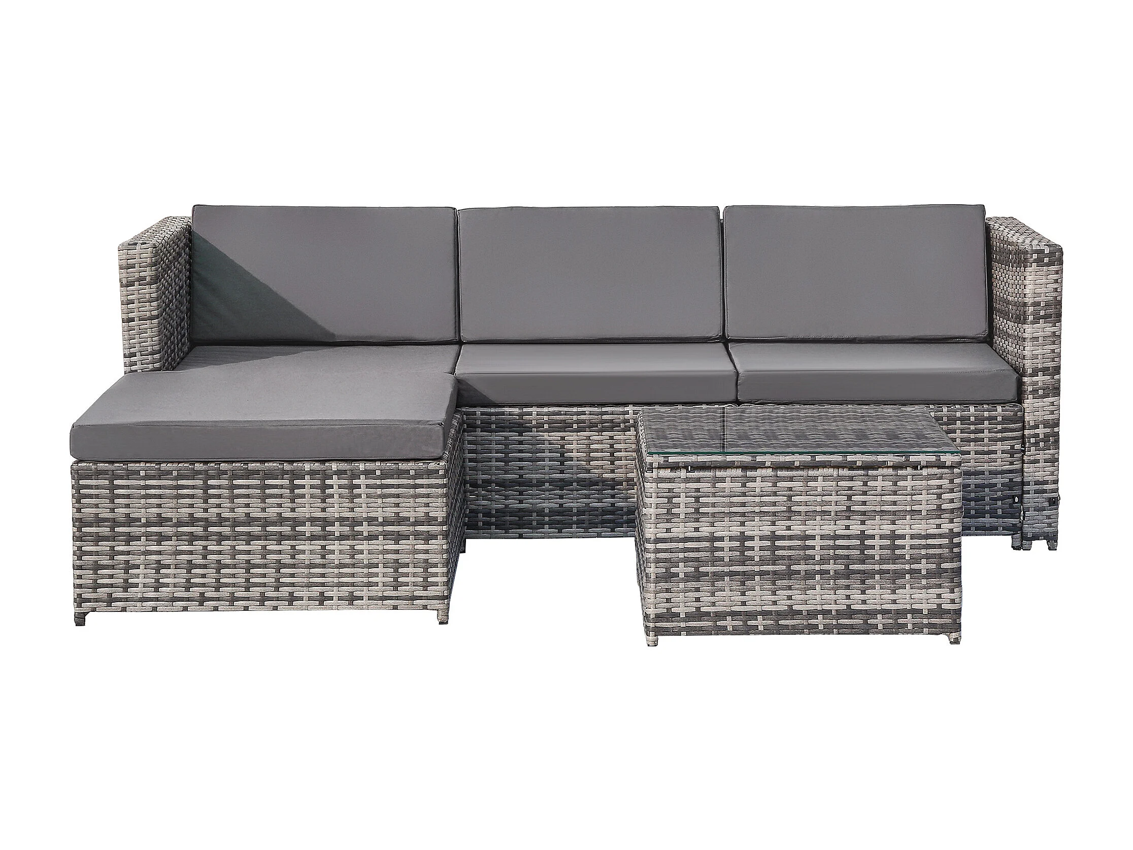 Sala de jardim em resina trançada - Sofá de canto exterior con mesa de centro - 4 lugares - Cinza