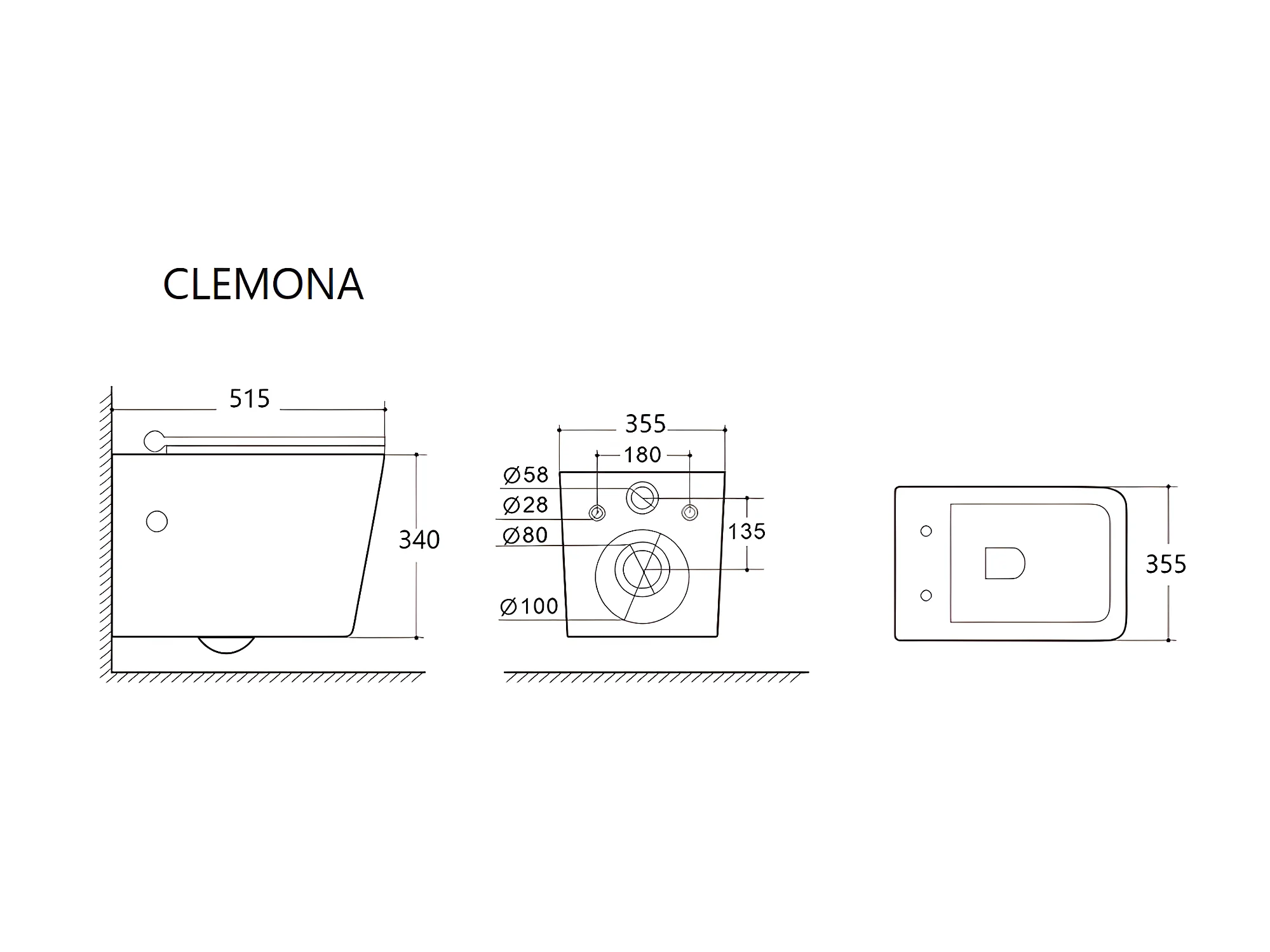 Sanita suspensa em cerâmica preto brilhante com estrutura de suporte decorativo - CLEMONA