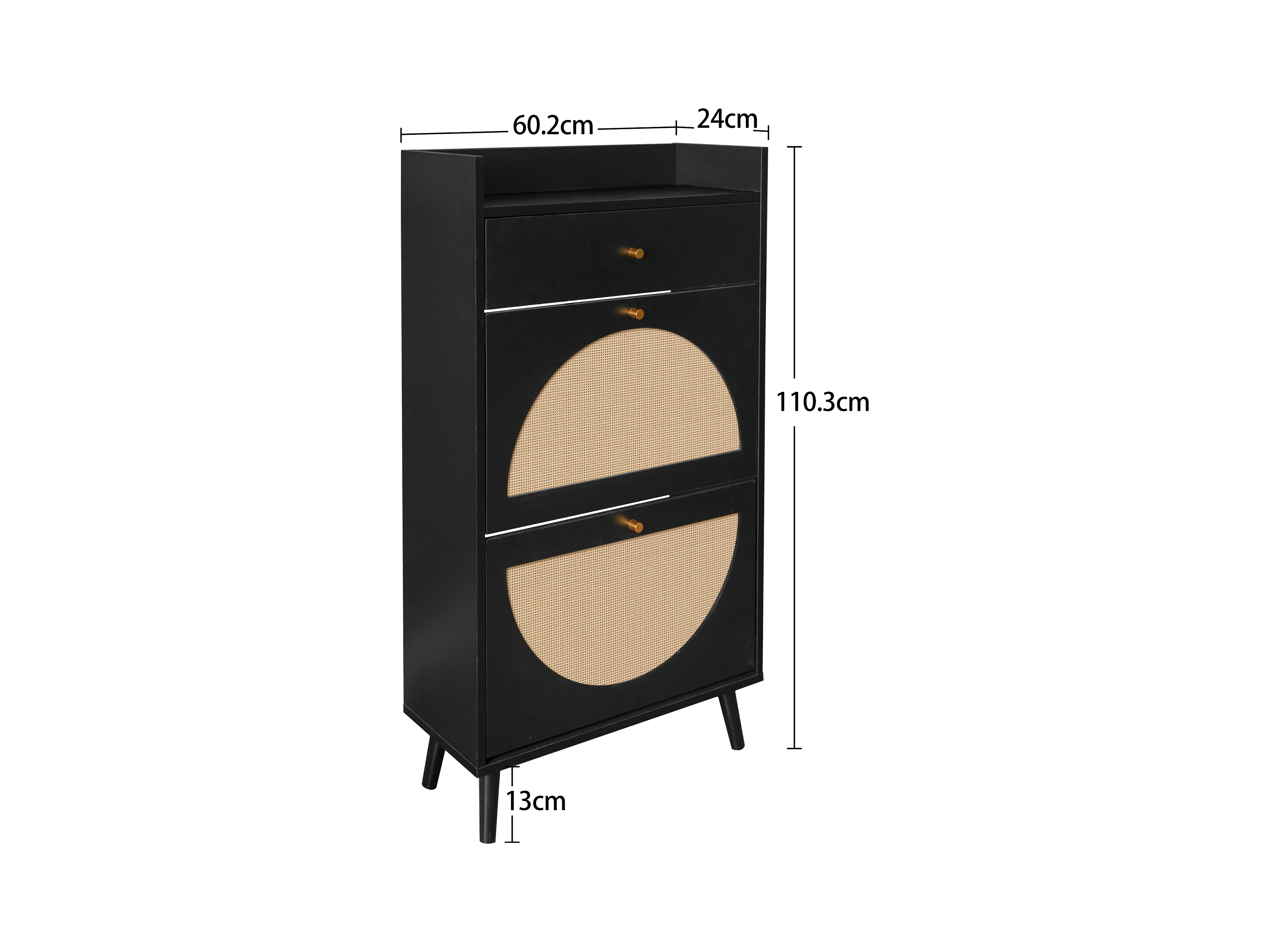 Sapateira 2 portas 1 gaveta entrada de armazenamento em rattan sintético preto 60 cm