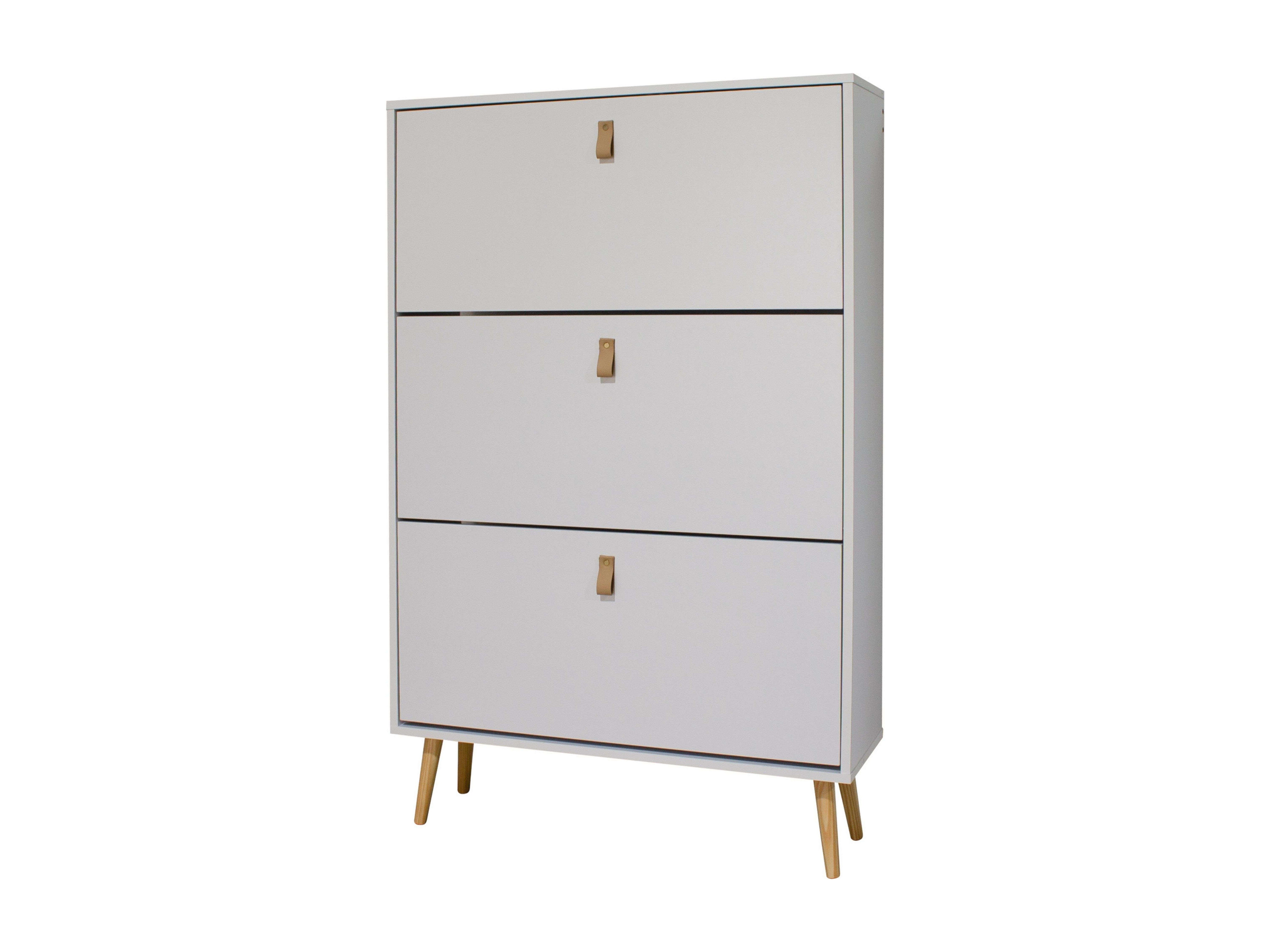 Sapateira branca Anzio com 3 portas dobráveis, melamina, 129x80x24 cm