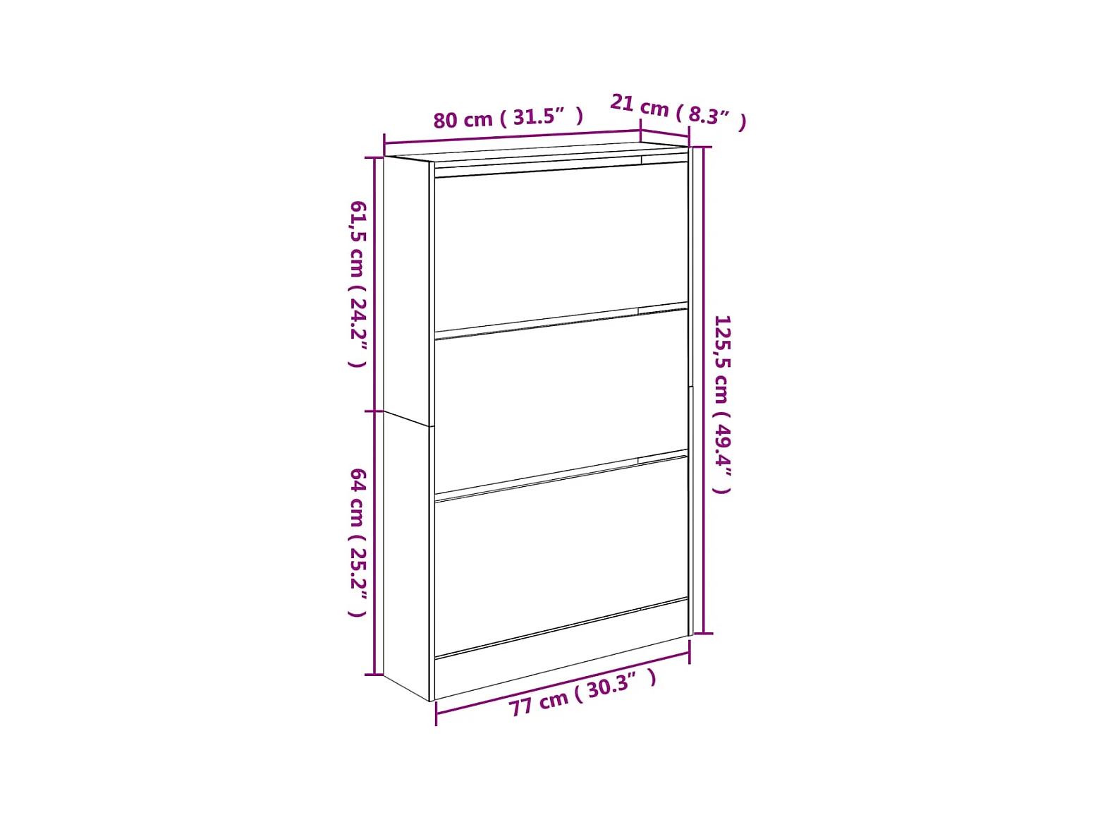 Sapateira cinza Sonoma 80x21x125,5cm madeira projetada