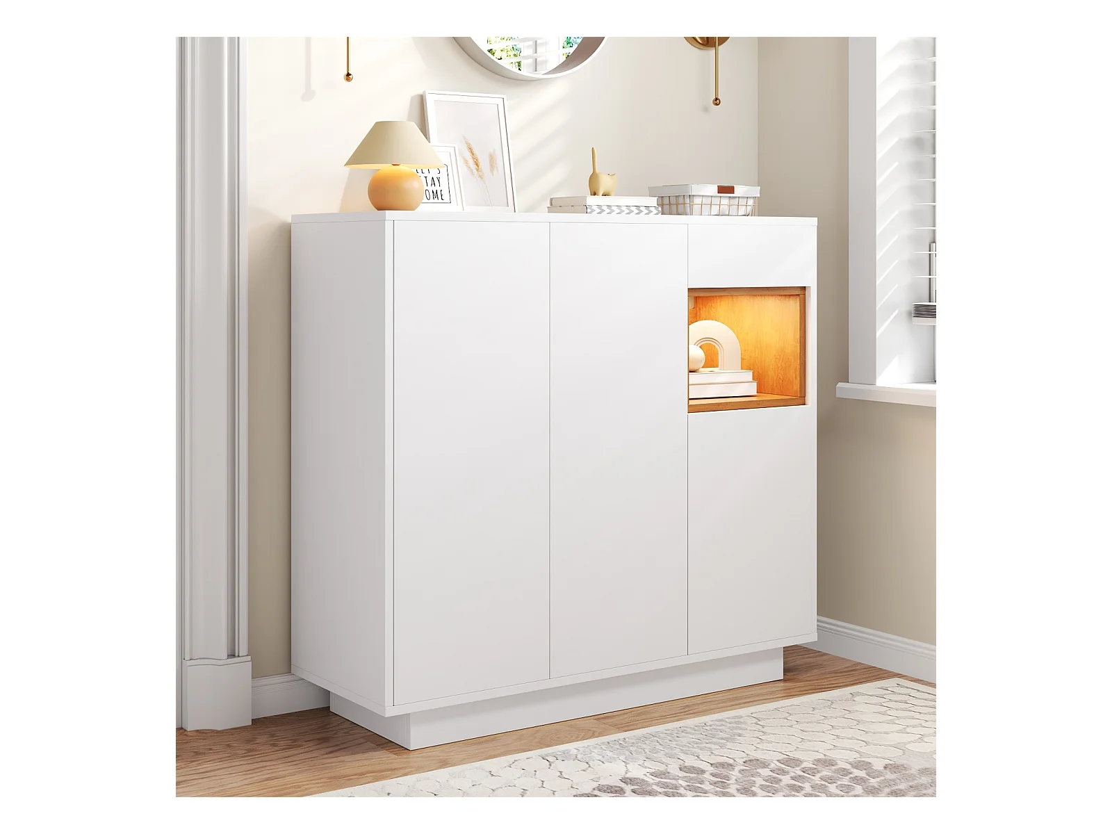 Sapateira com uma gaveta e prateleiras reguláveis, branca e madeira natural, para entrada, estilo moderno, capacidade de 14 a 18 pares de sapatos