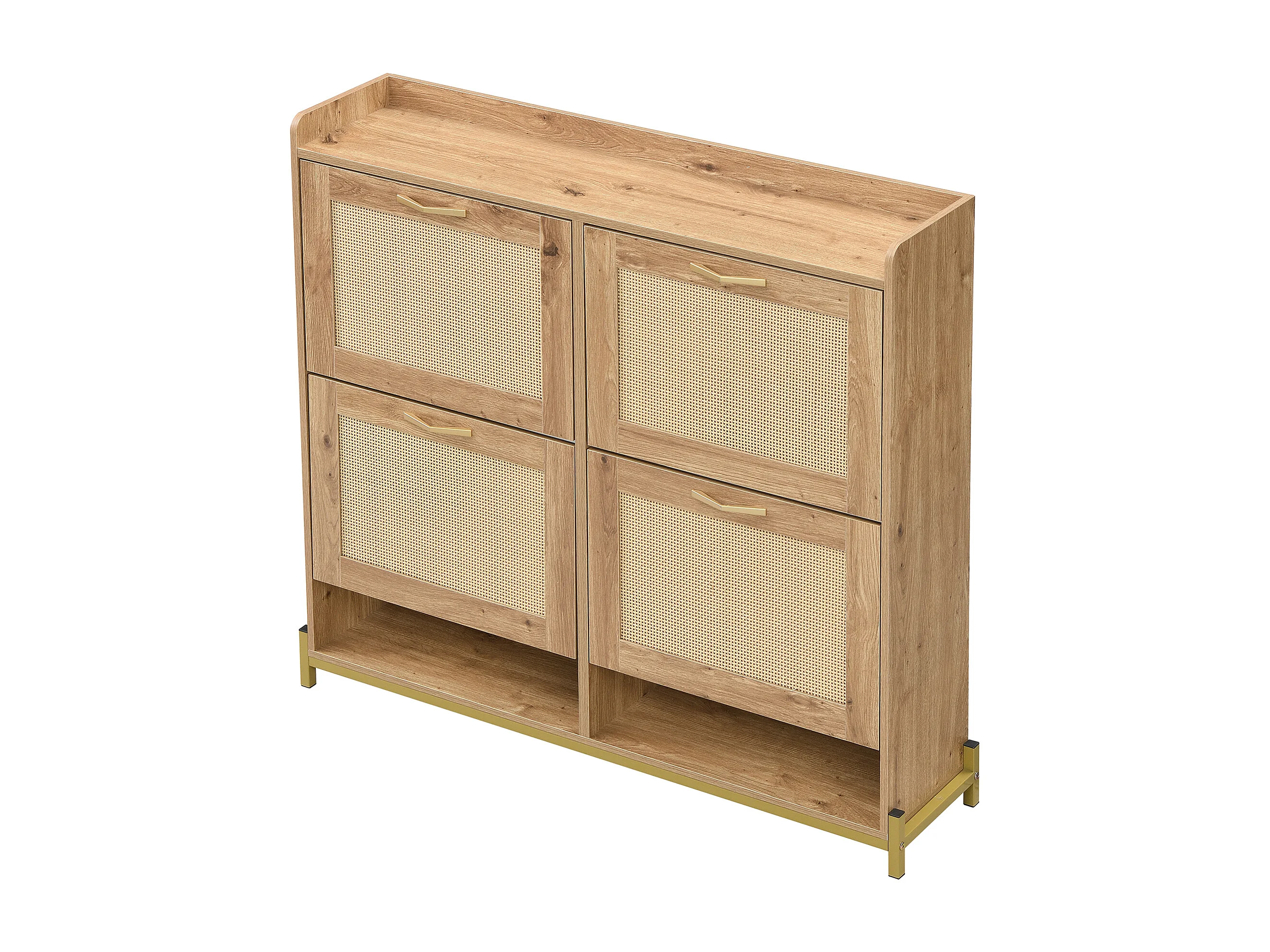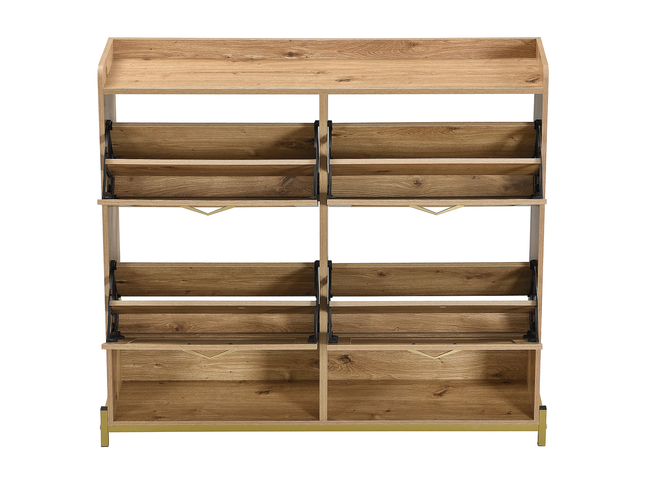 Sapateira compacta de madeira e metal com 3 abas para corredor 108,5x24x100cm cinza
