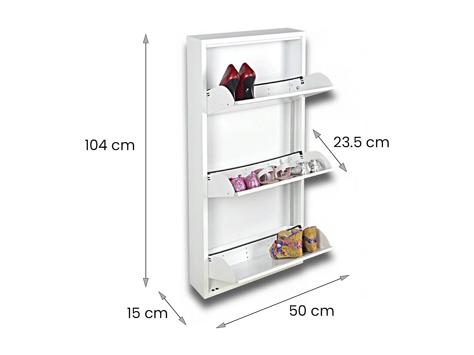 Sapateira Danacleri, Armário de sapato de metal, Armário de entrada multiuso, Armário de calçado, 50x15h104 cm, Branco