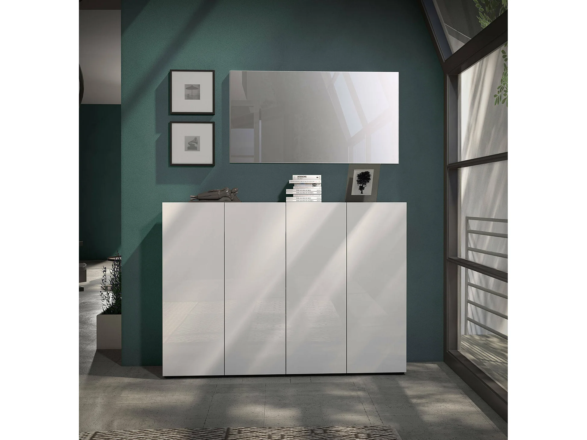 Sapateira Ddilorenz, Sapateira, Armário de entrada multiuso, Armário para calçado, Made in Italy, 160x34h115 cm, Branco brilhante