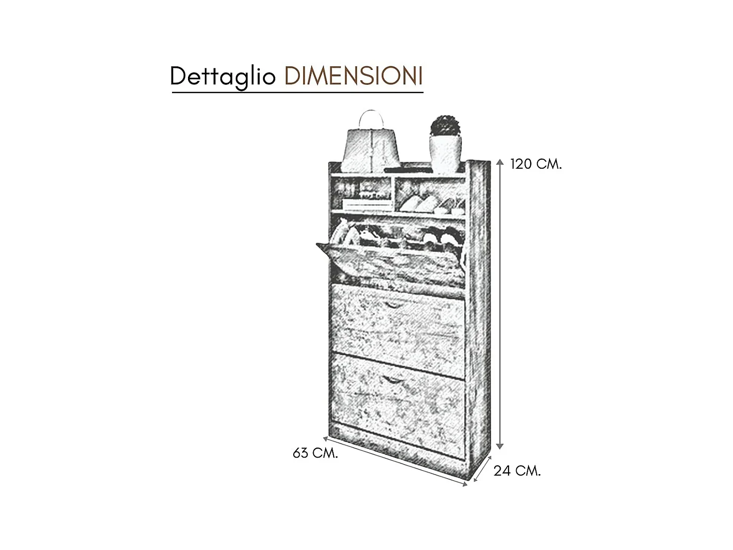 Sapateira de entrada economizadora de espaço 3 portas duplas dobráveis em madeira, 2 compartimentos diurnos, sapateira fina, cm 63x24x120 - ZIK