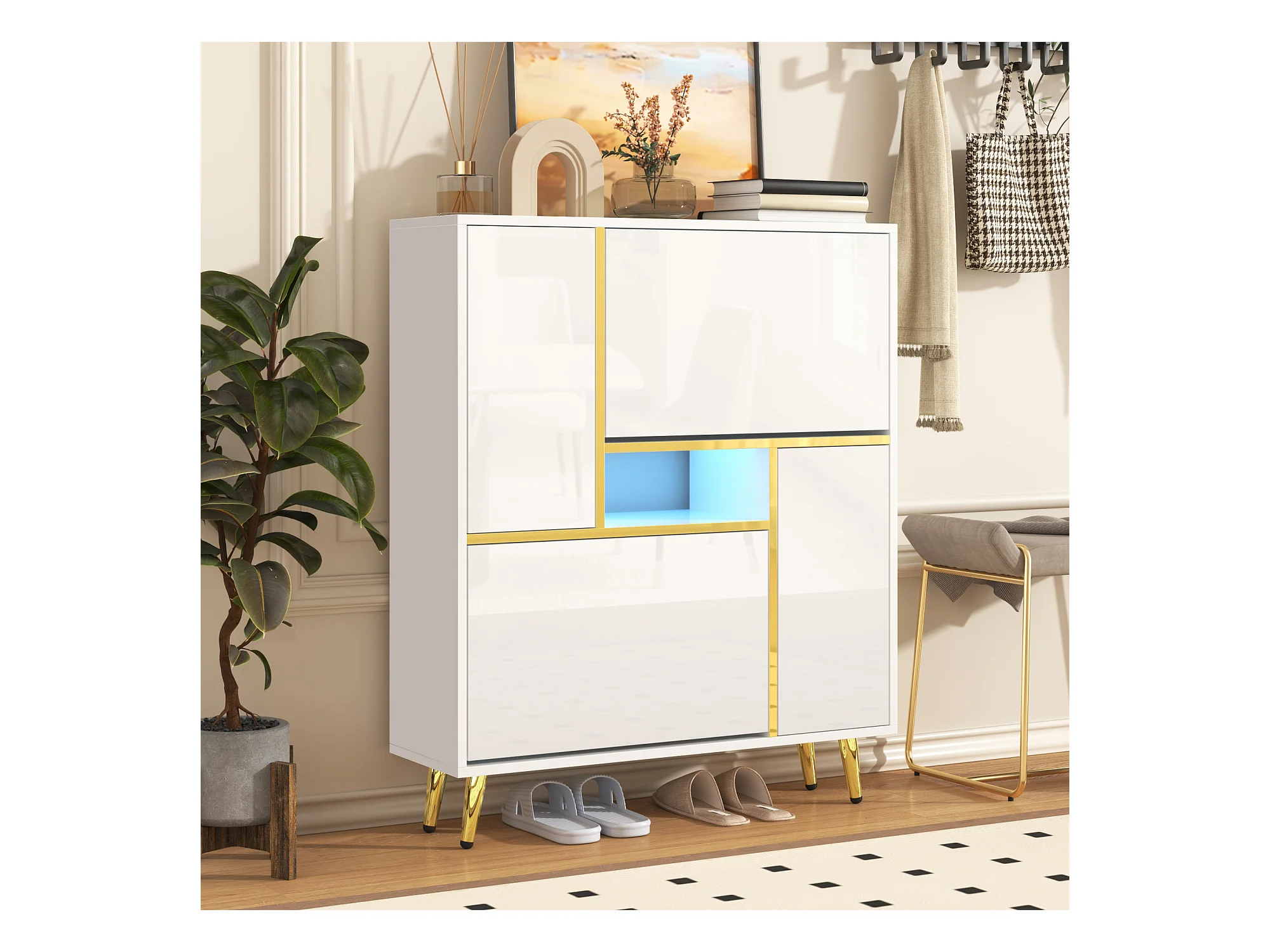 Sapateira de madeira branca LED 16 cores moderna entrada de armazenamento 80x25x96 cm