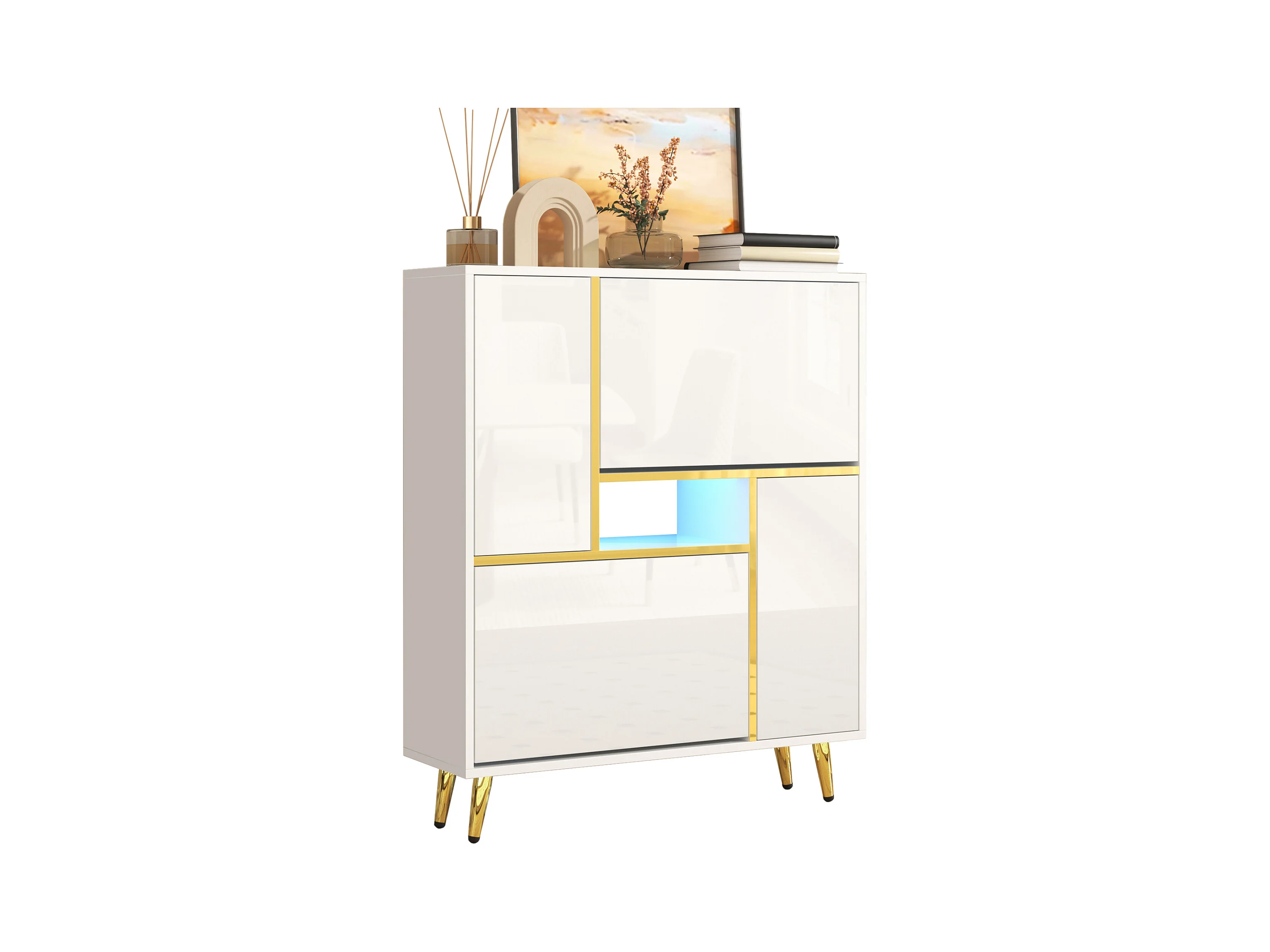 Aparador de madeira MDF com decoração em arco e puxadores dourados, arrumação para quarto, sala, branco, 90x40x80cm
