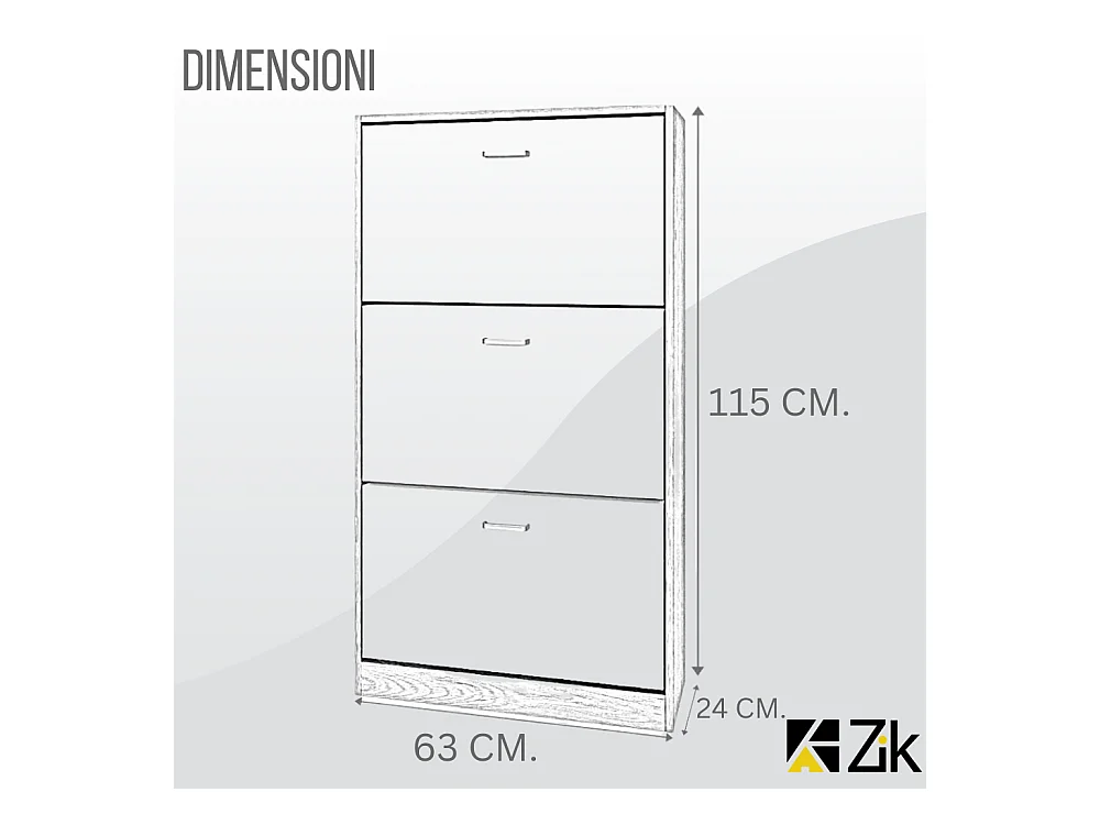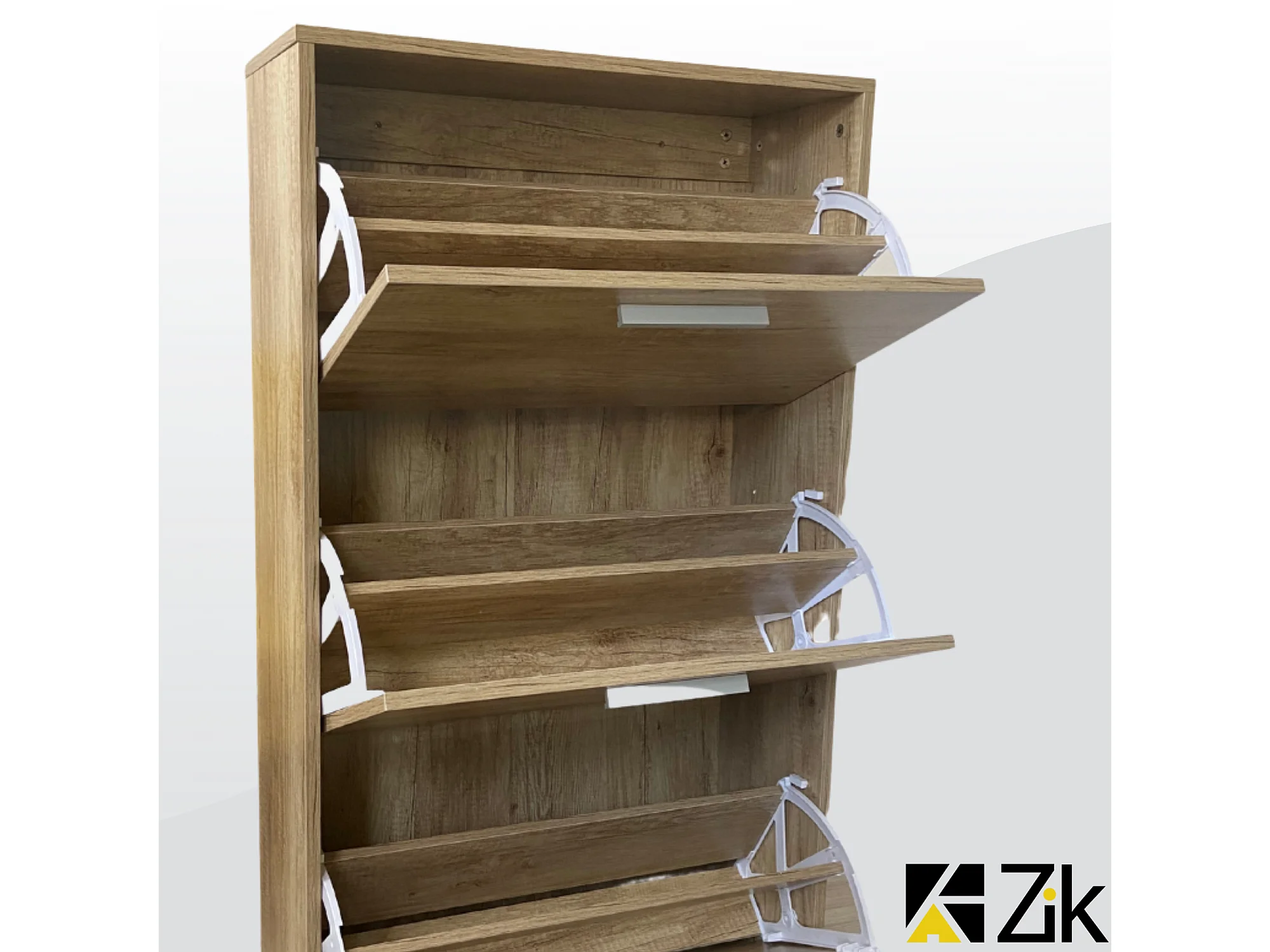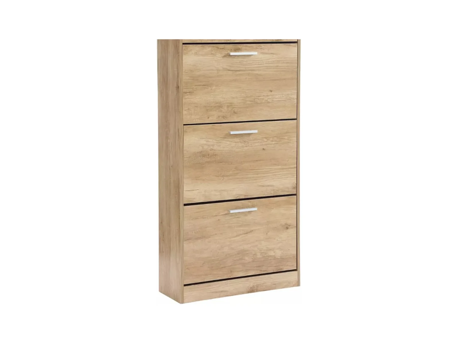 Sapateira de madeira economizadora de espaço 3 portas rebatíveis Profundidade dupla para entrada, Mobiliário estreito, Carvalho 63x24x115cm - ZIK