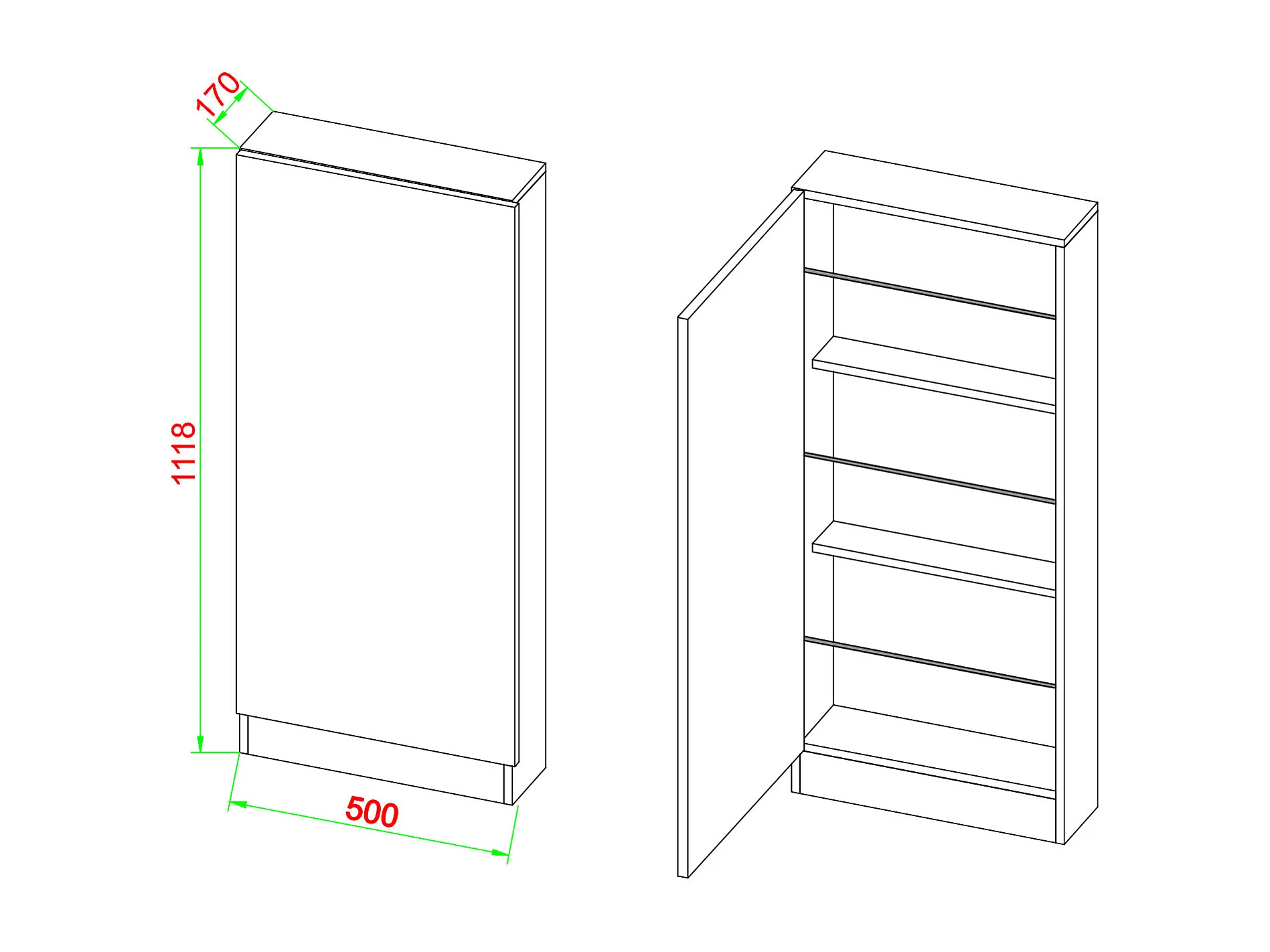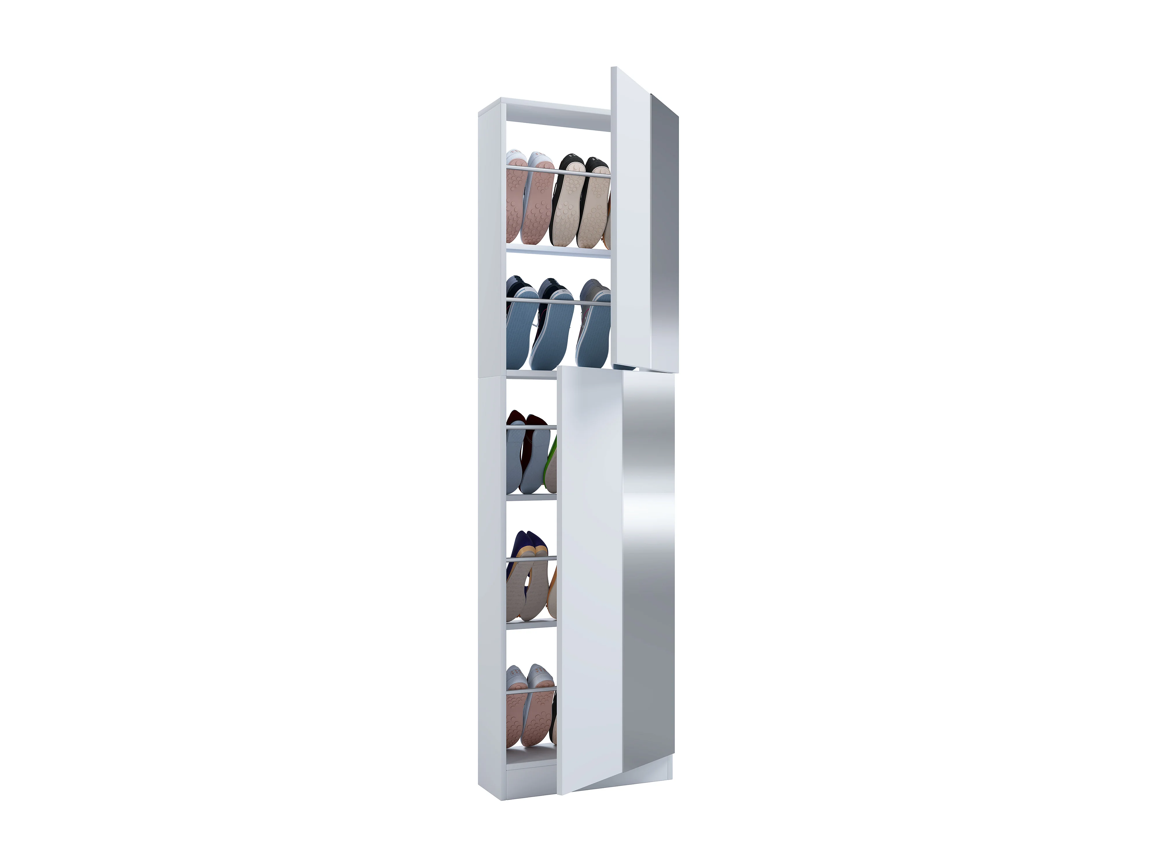 Armário de sapato de madeira VCM | Dimensões: A. 180 x L. 50 x P. 17 cm | 2 Portas Rotativas | Espelho Prático - Fulisa XL Espelho (Branco)