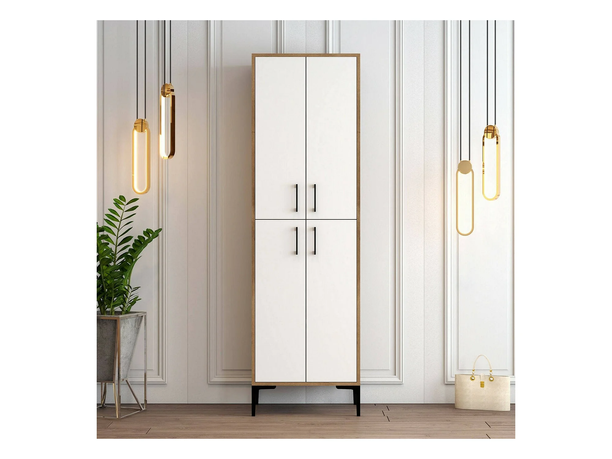 Sapateira Dolivier, Sapateira, Armário de entrada multiuso, Armário de calçado, 60x35h200 cm, Nogueira e Branco