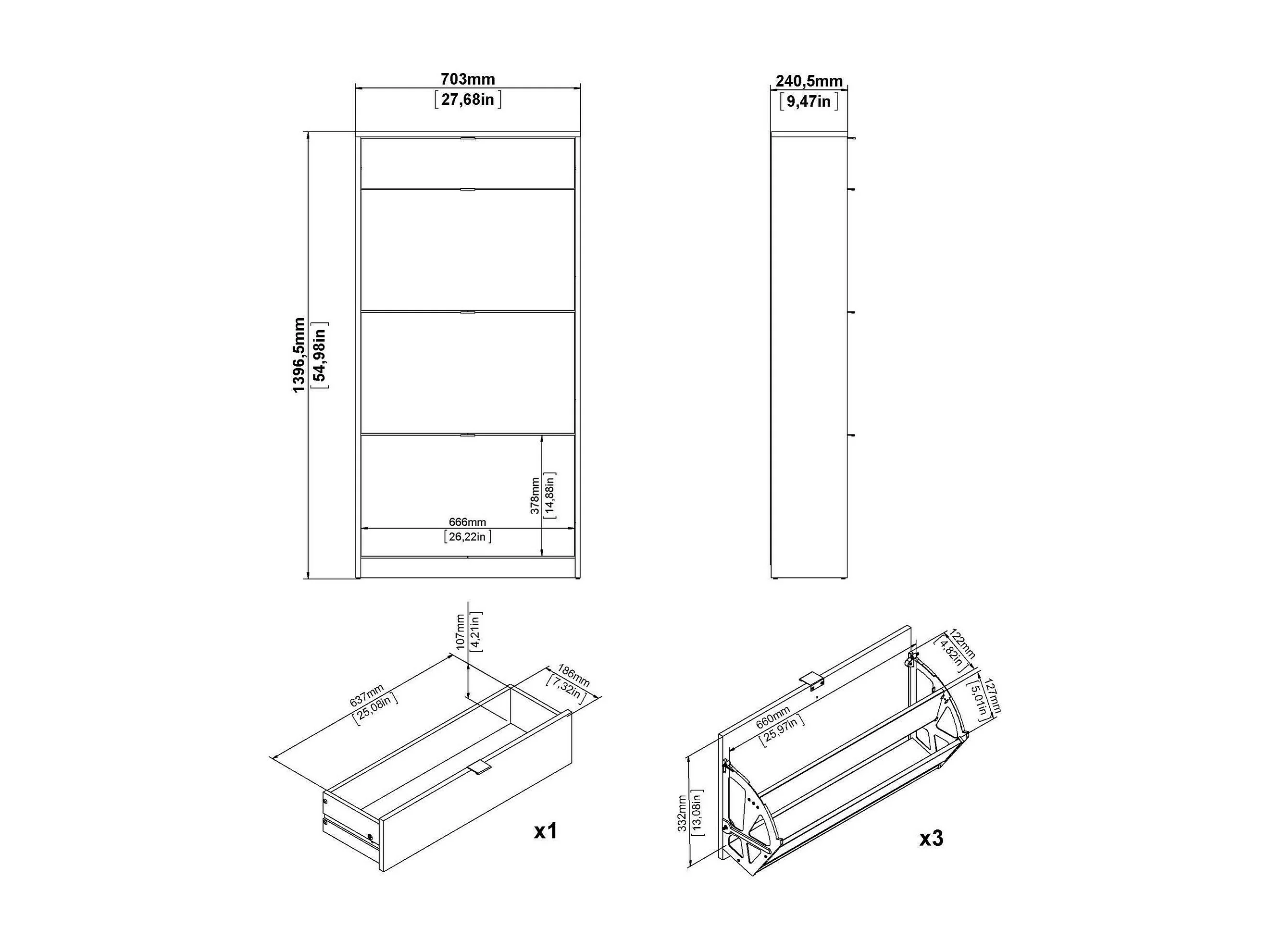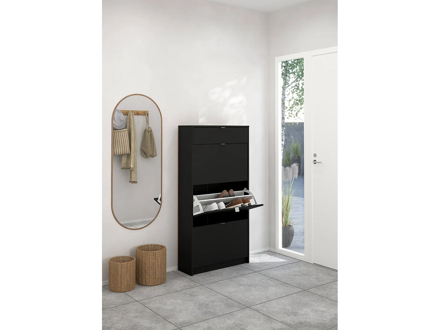 Sapateira Dtraor, Sapateira, Armário de entrada multiusos, Sapateira, 70x24 h162 cm, Preto