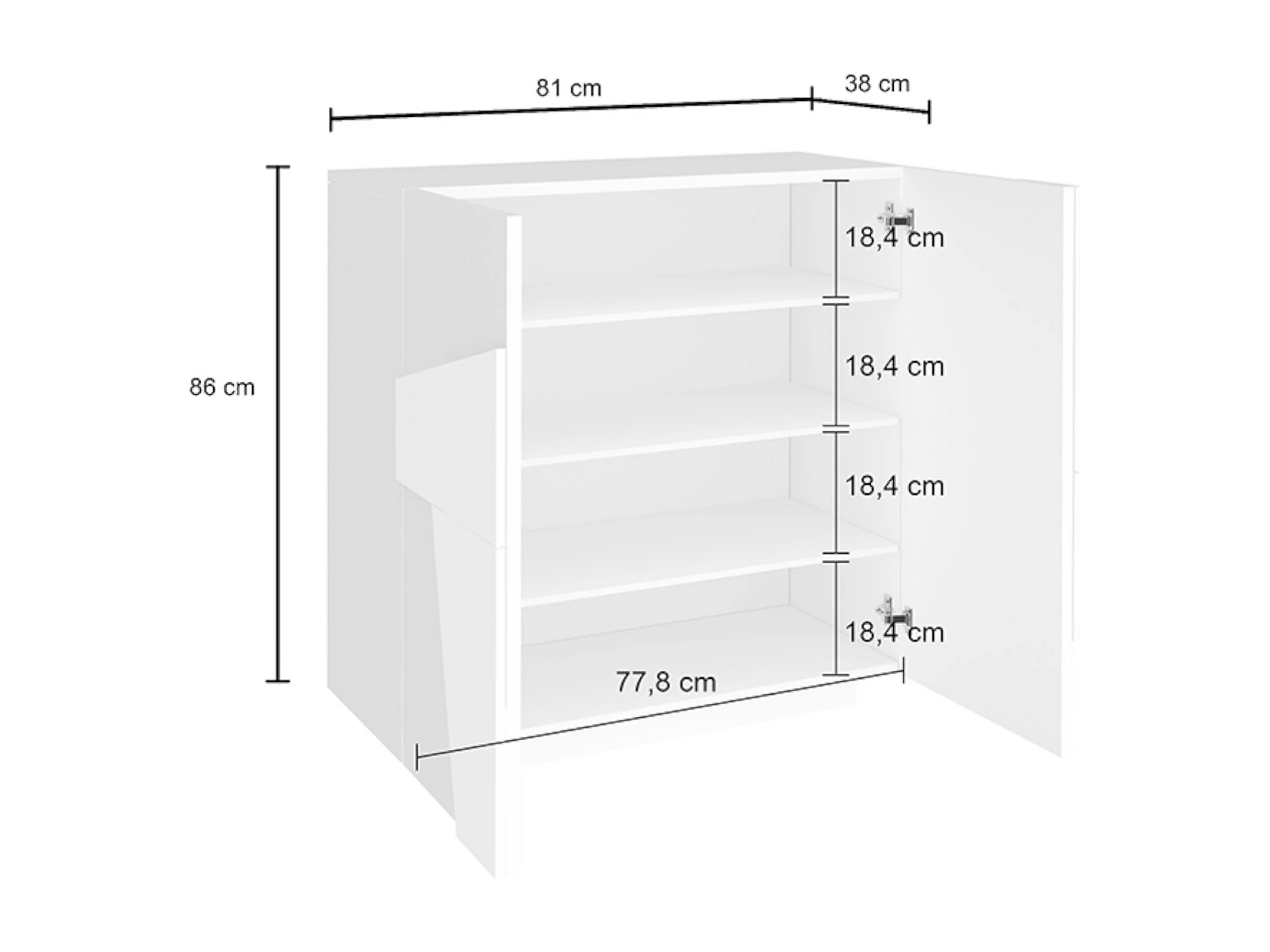 Sapateira Joel, Armário multiuso com 2 portas, Sapateira de entrada, 100% Fabricado na Itália, 81x38h86 cm, Branco brilhante com detalhe