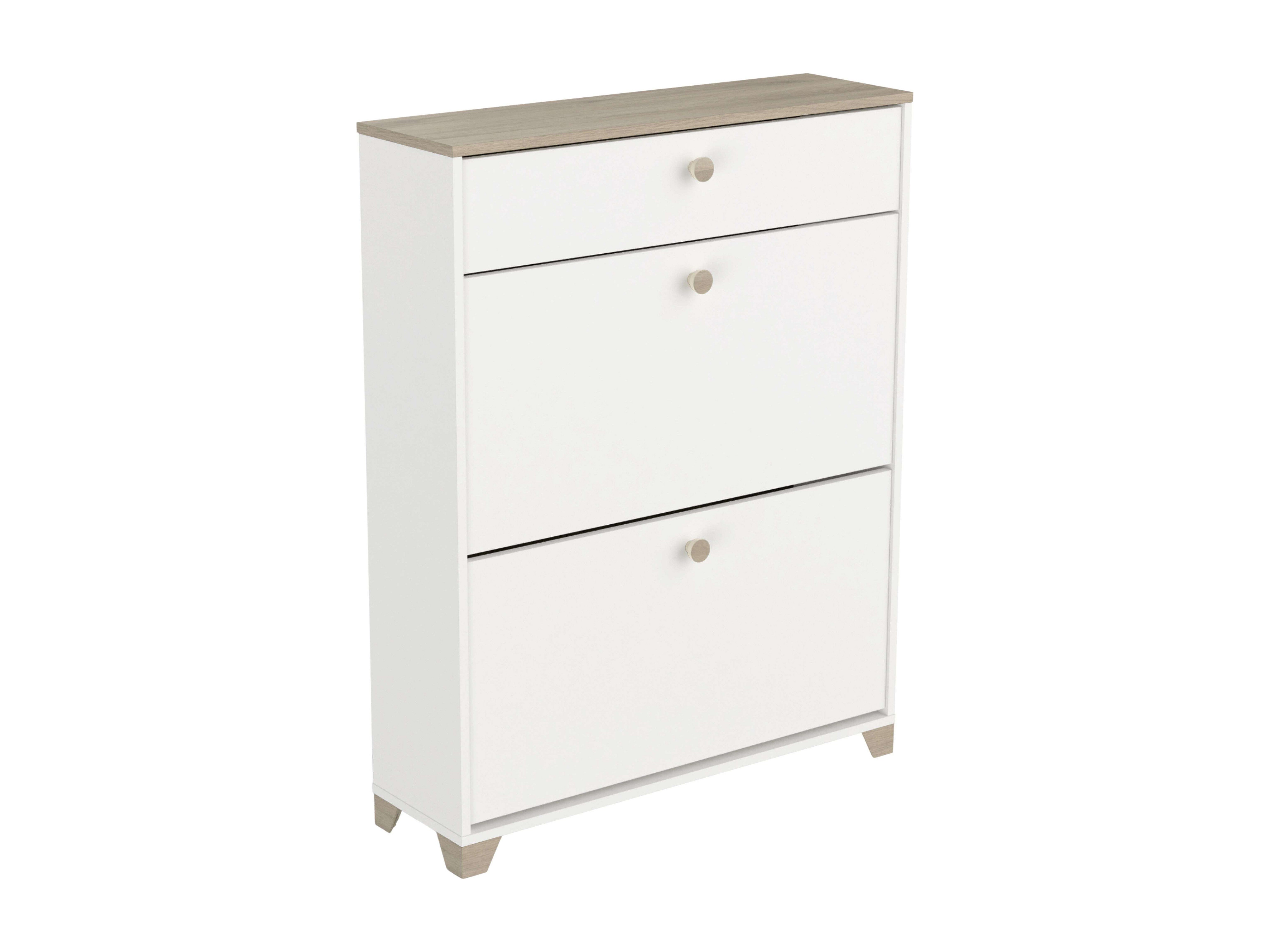 Sapateira Tivoli com 2 gavetas dobráveis, melamina branca, 81x74x24 cm