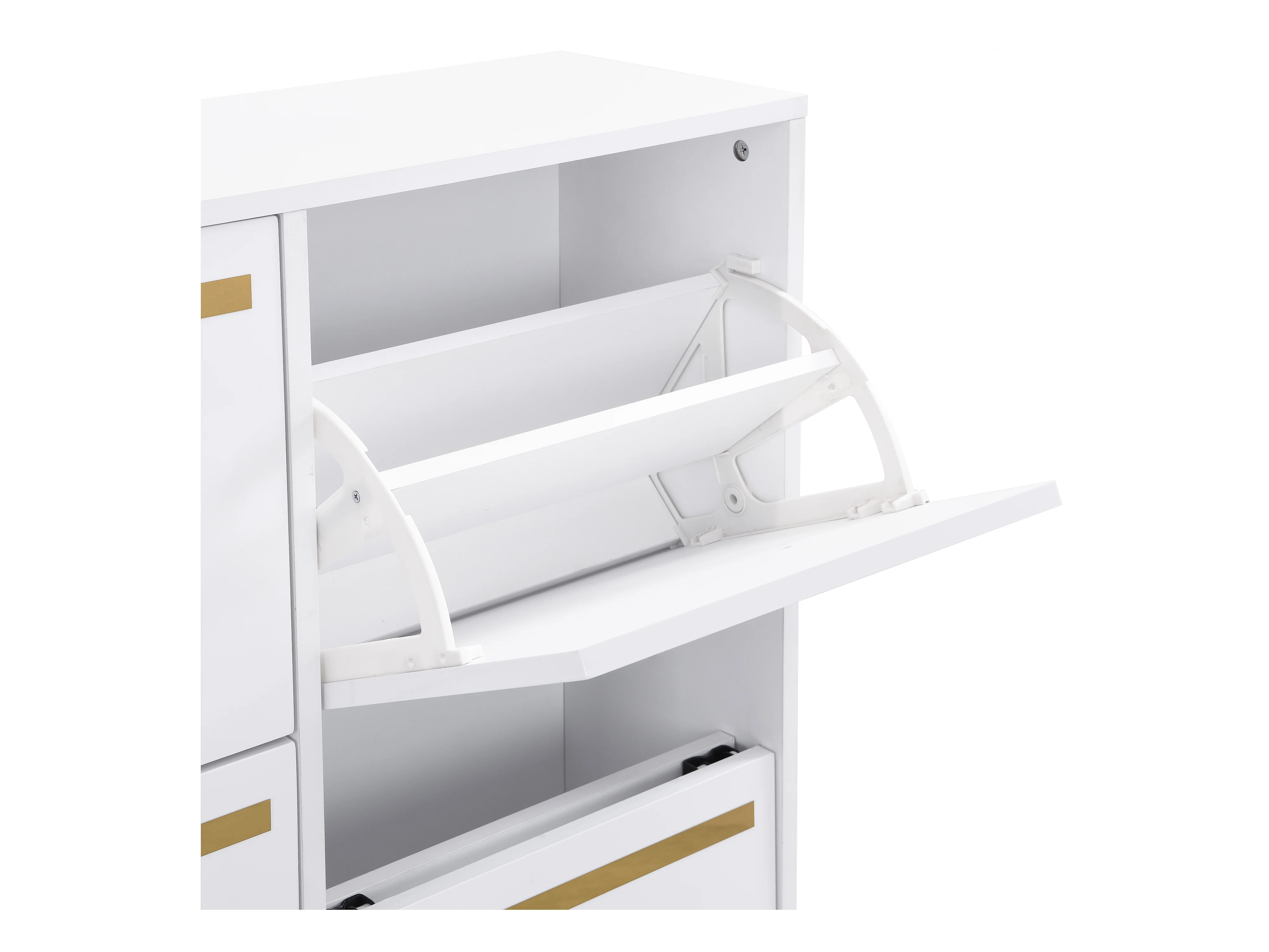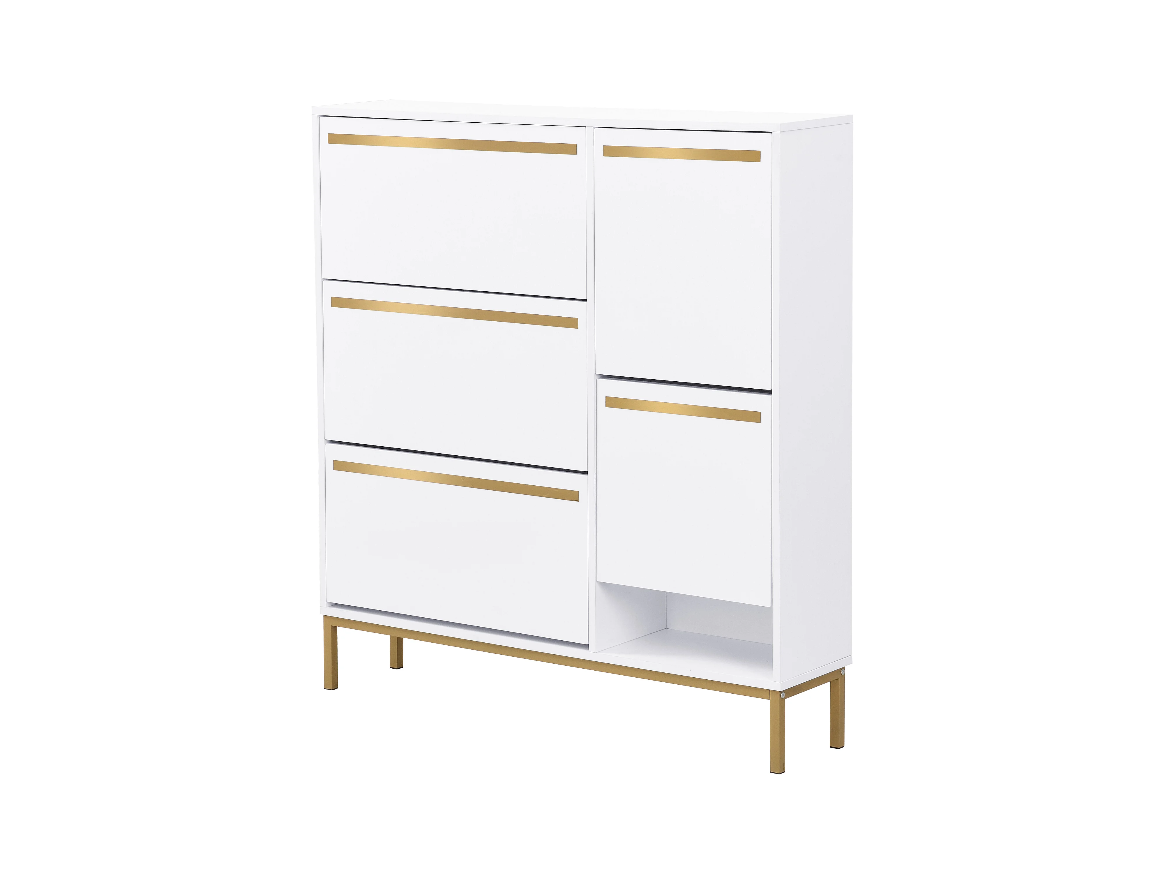 Sapateira MDF embutida banco de armazenamento hall entrada branco ouro 105x115x25 cm