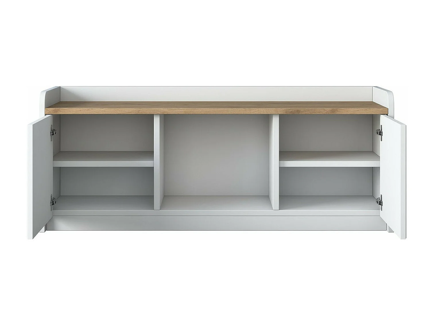 Sapateira Moderna "Linea" com Banco - 120 x 45 x 40 cm - Branco e Nogueira para Organizar Sapatos