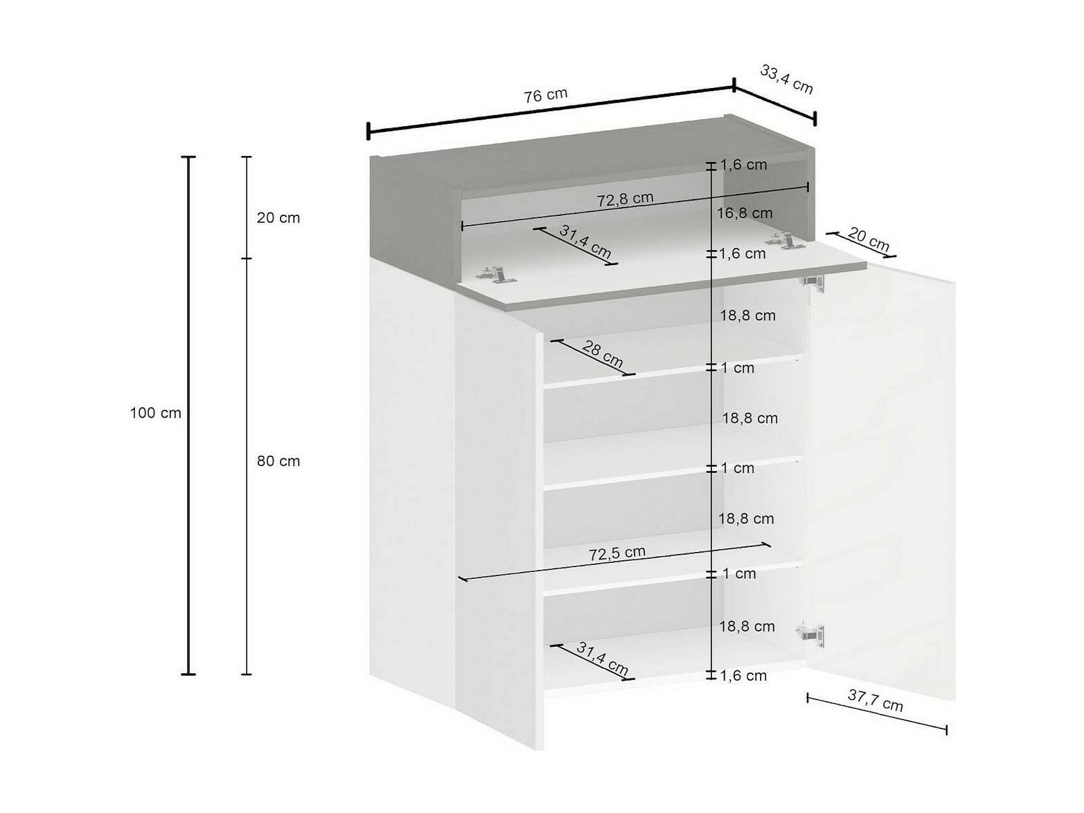 Sapateira Dfogl, Armário multiuso com 2 portas, Sapateira de entrada, 100% Fabricado na Itália, 80x38h86 cm, Branco brilhante