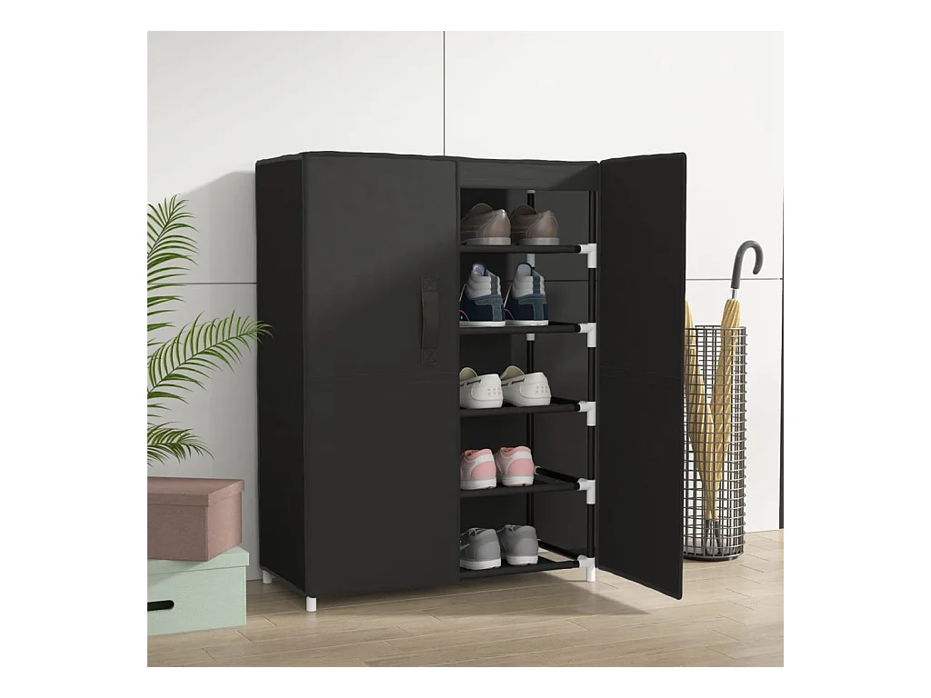 Sapateira com tampa 115 x 28 x 110cm Tecido Preto