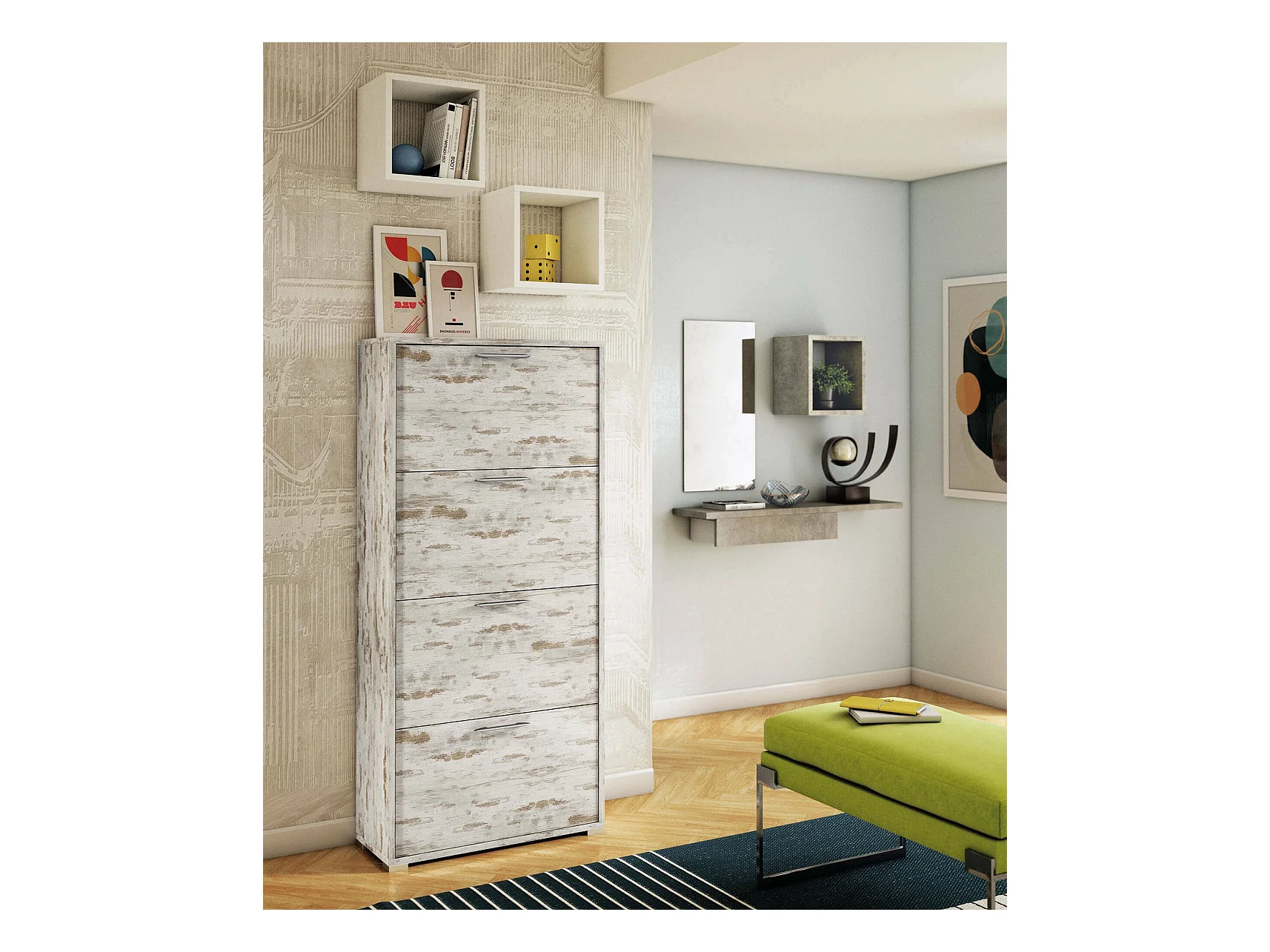 Sapateira Orfeo, Armário multiuso com 4 portas articuladas, Sapateira de entrada, 100% Fabricado na Itália, 81x38h167 cm, Branco brilhante