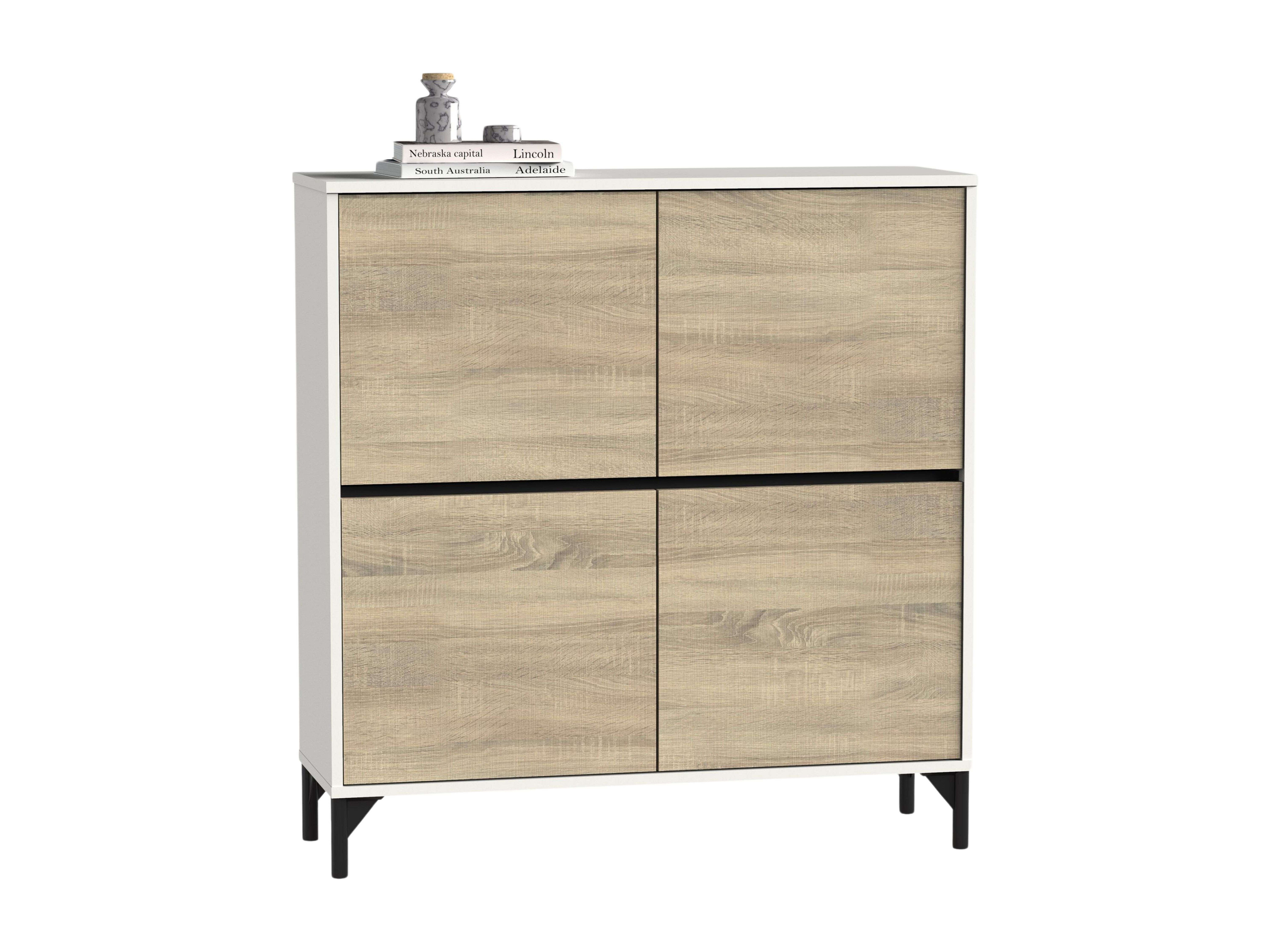 Sapateira para Corredor 4 Portas, Capacidade 24 Pares Carvalho Nodi/Branco 105x112x24 cm