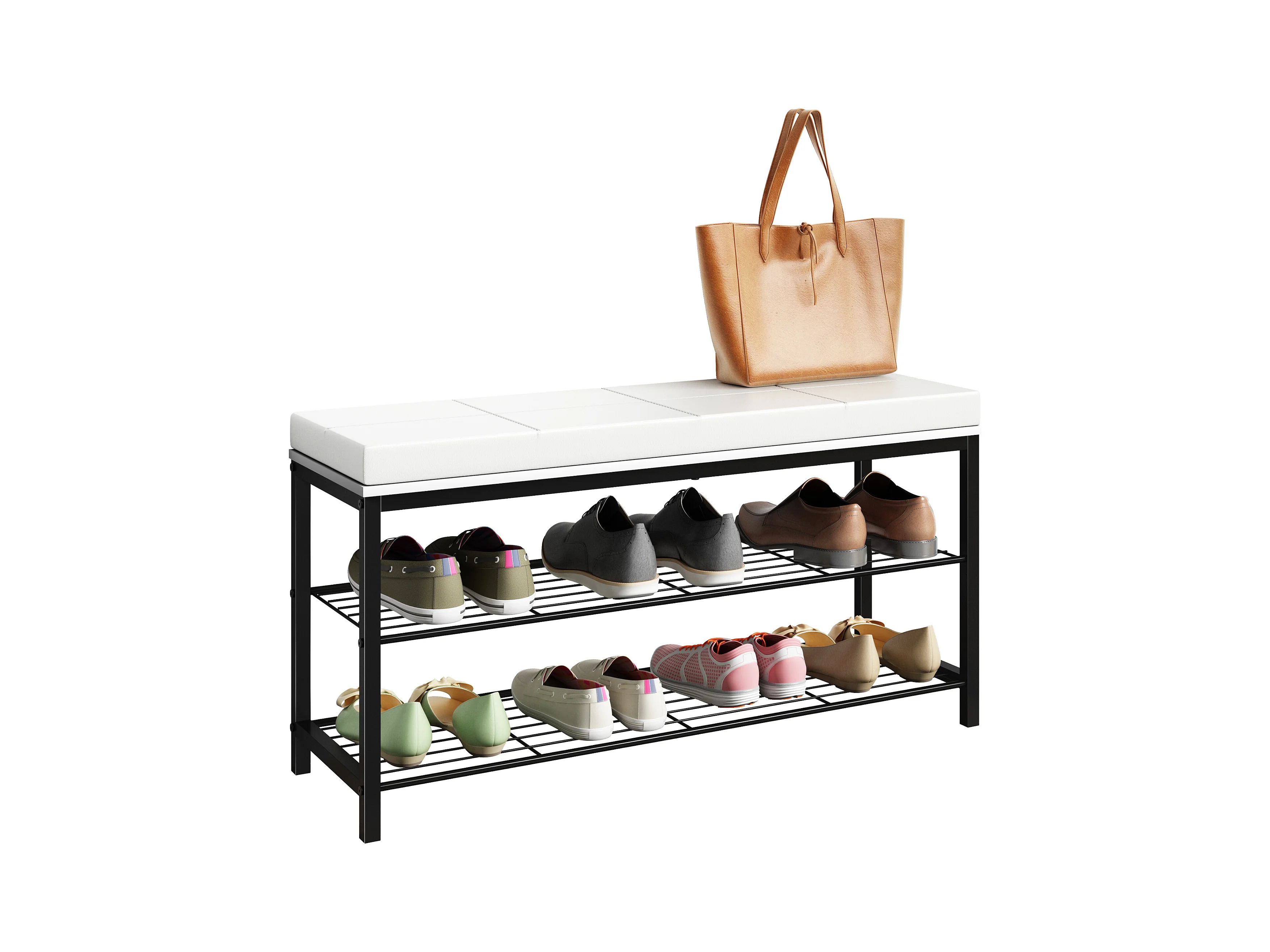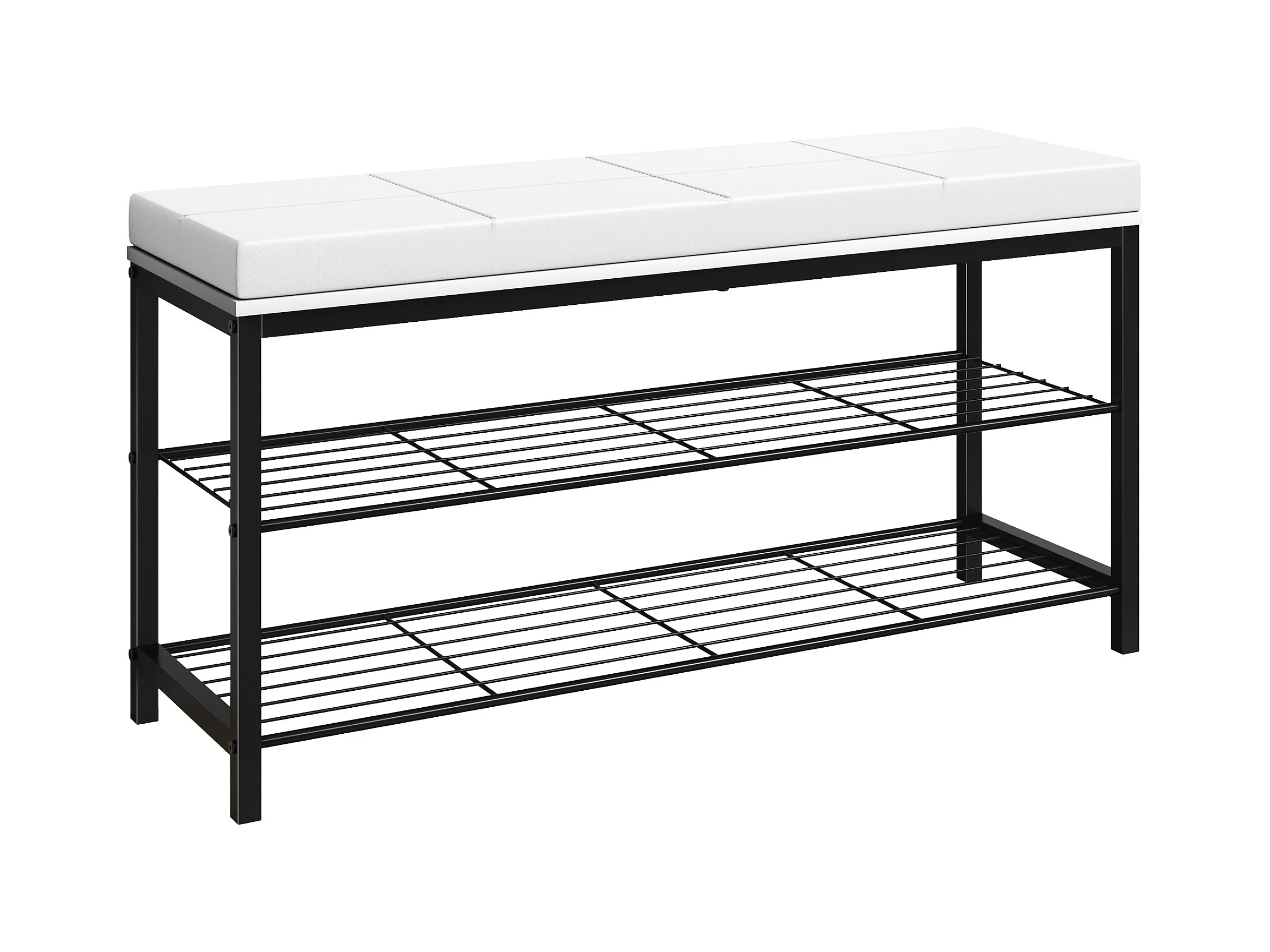 Prateleira de sapatos VCM | Dimensões aprox. A. 48 x L. 90 x P. 30 cm | Assento em design de estilo industrial | Banco de sapatos - Taliro (Branco)