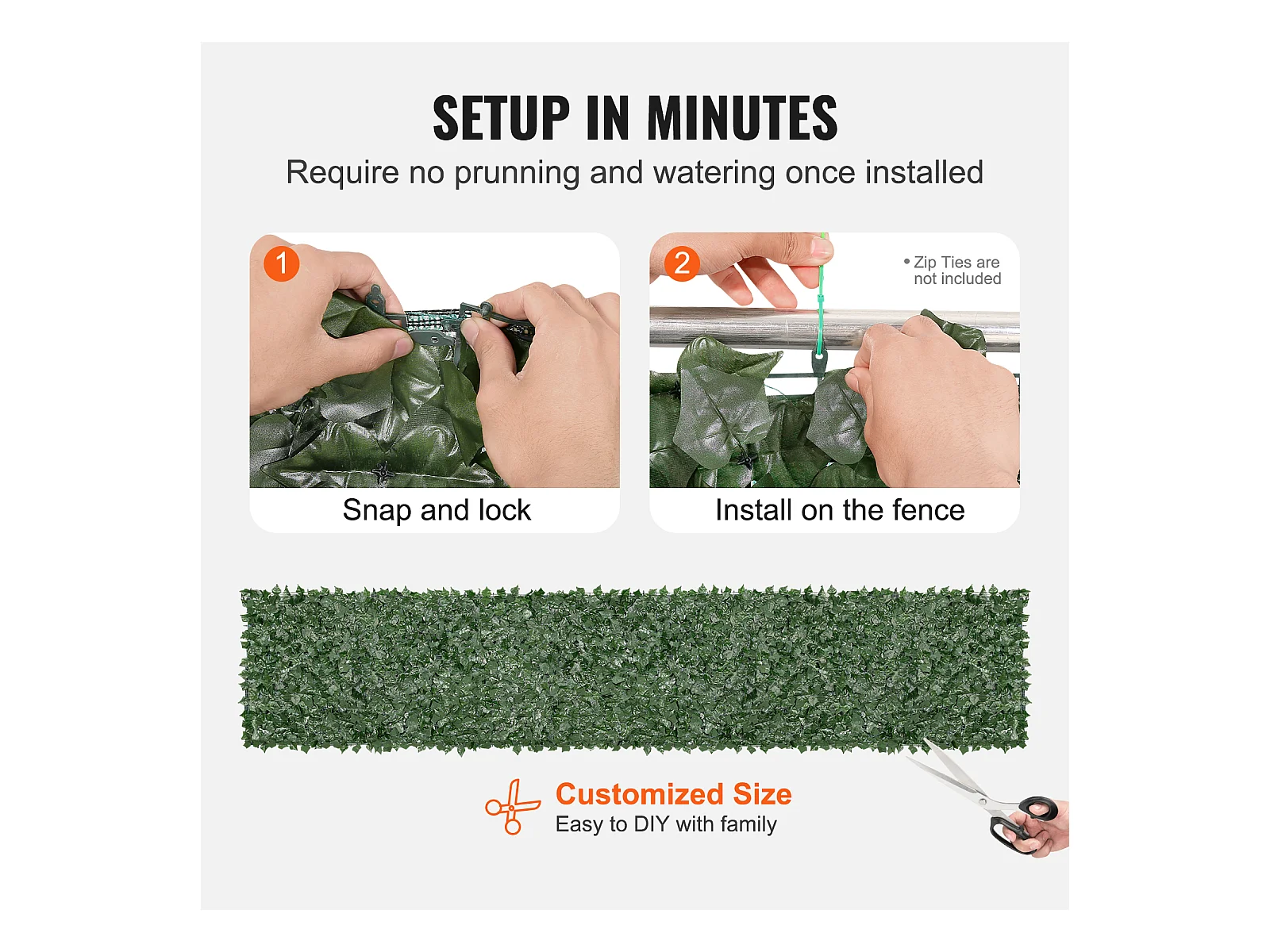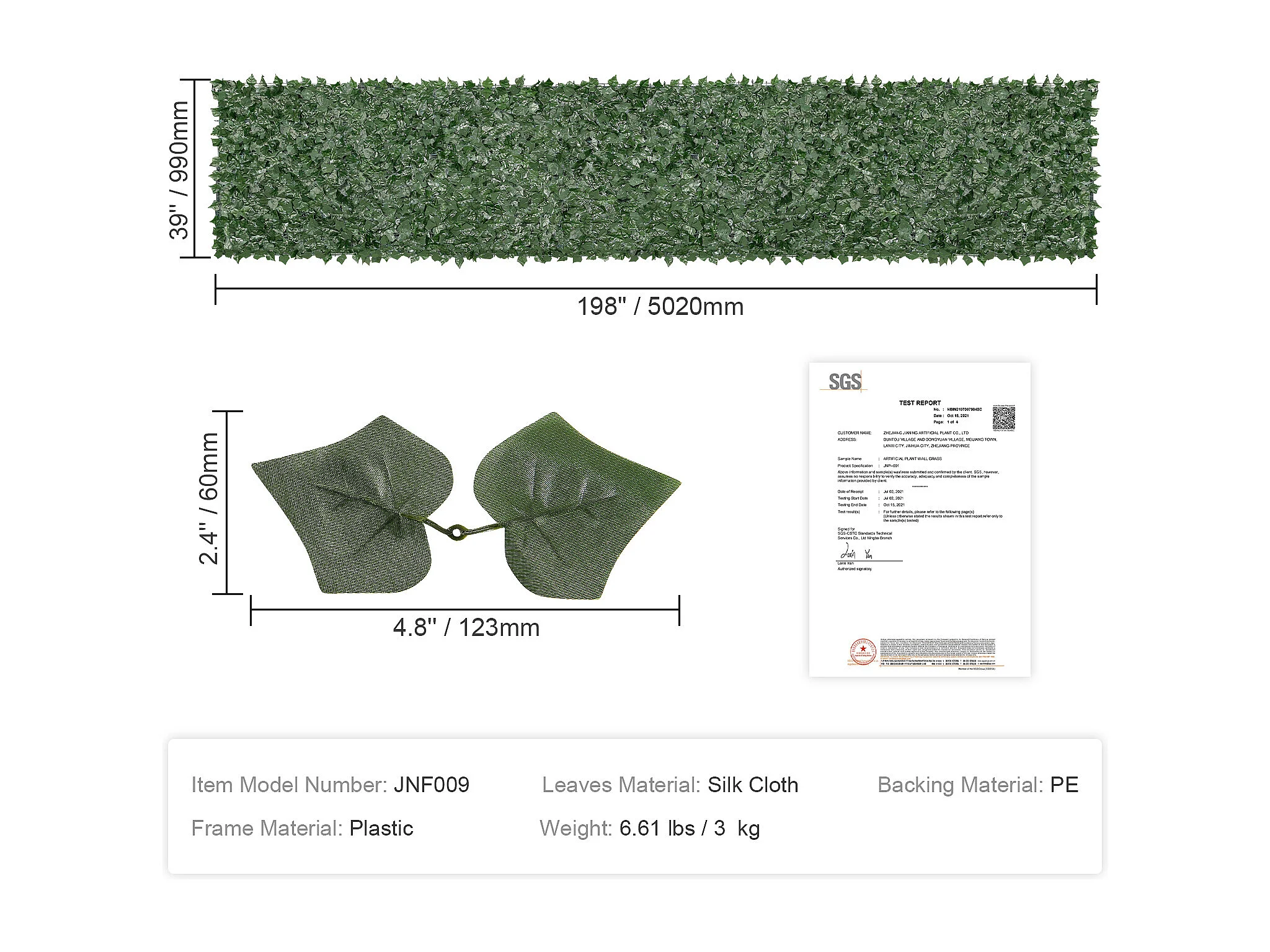 Sebe Artificial SucceBuy Tela de Cerca de Folhas de Hera Artificial de 99.06 x 502.92 cm com Tecido de Malha