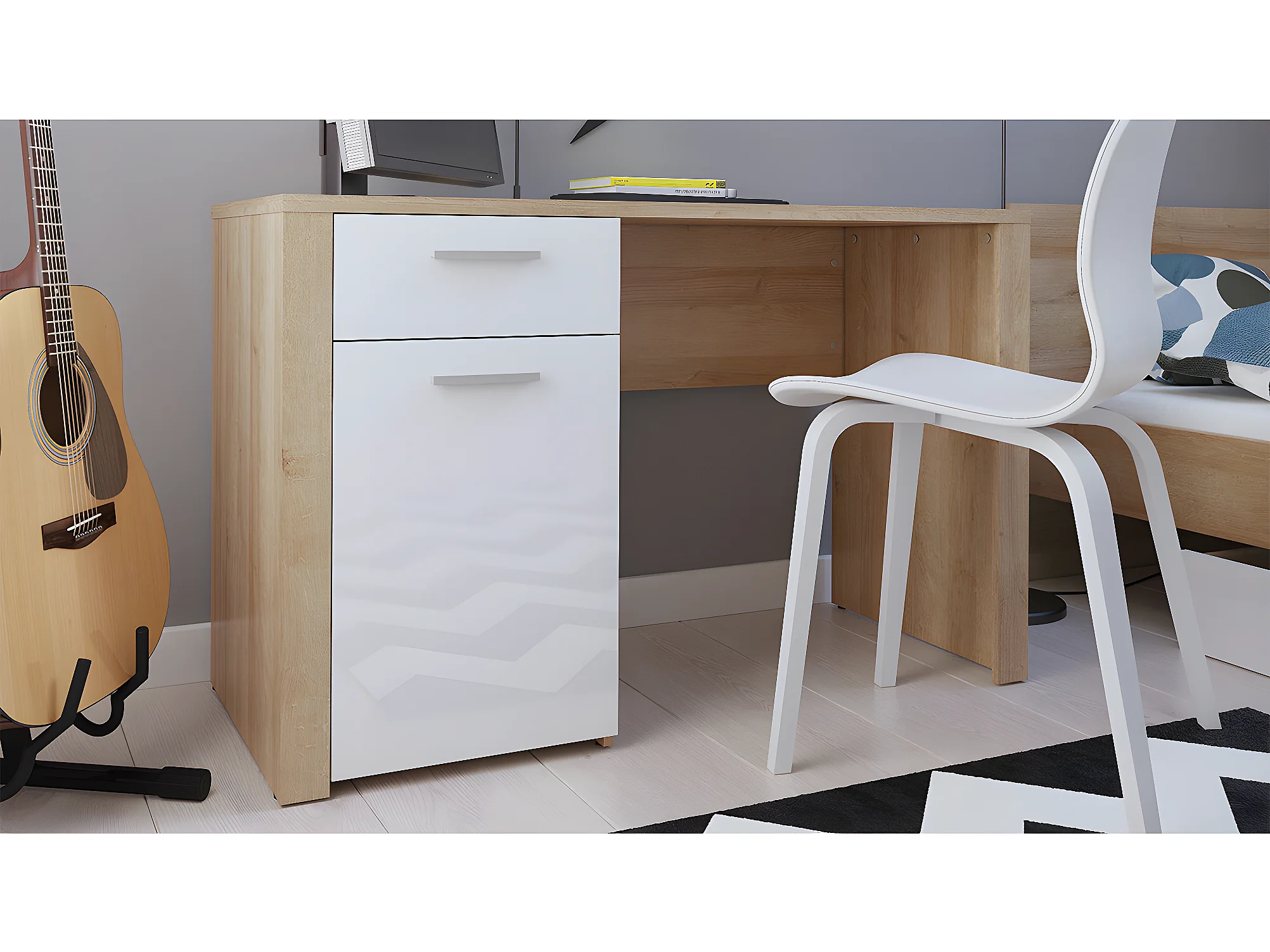Secretária 1 porta 1 gaveta Nora branco e madeira 77cm