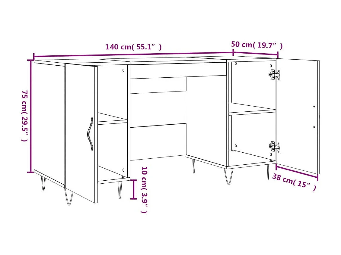 Secretária 140x50x75 cm derivados de madeira carvalho sonoma