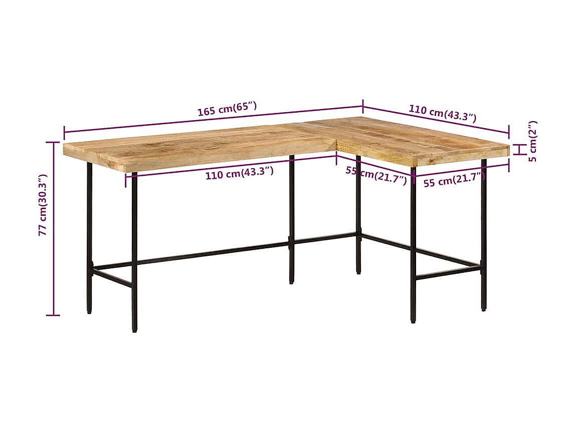 Secretária 165x110x77 cm madeira maciça manga e ferro