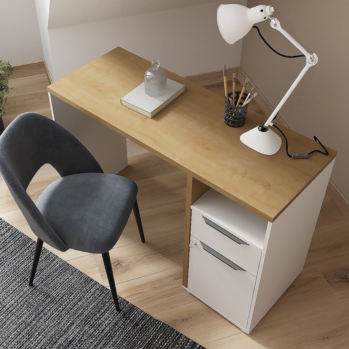 Secretária 1 porta 1 gaveta Selma branco e madeira 76cm