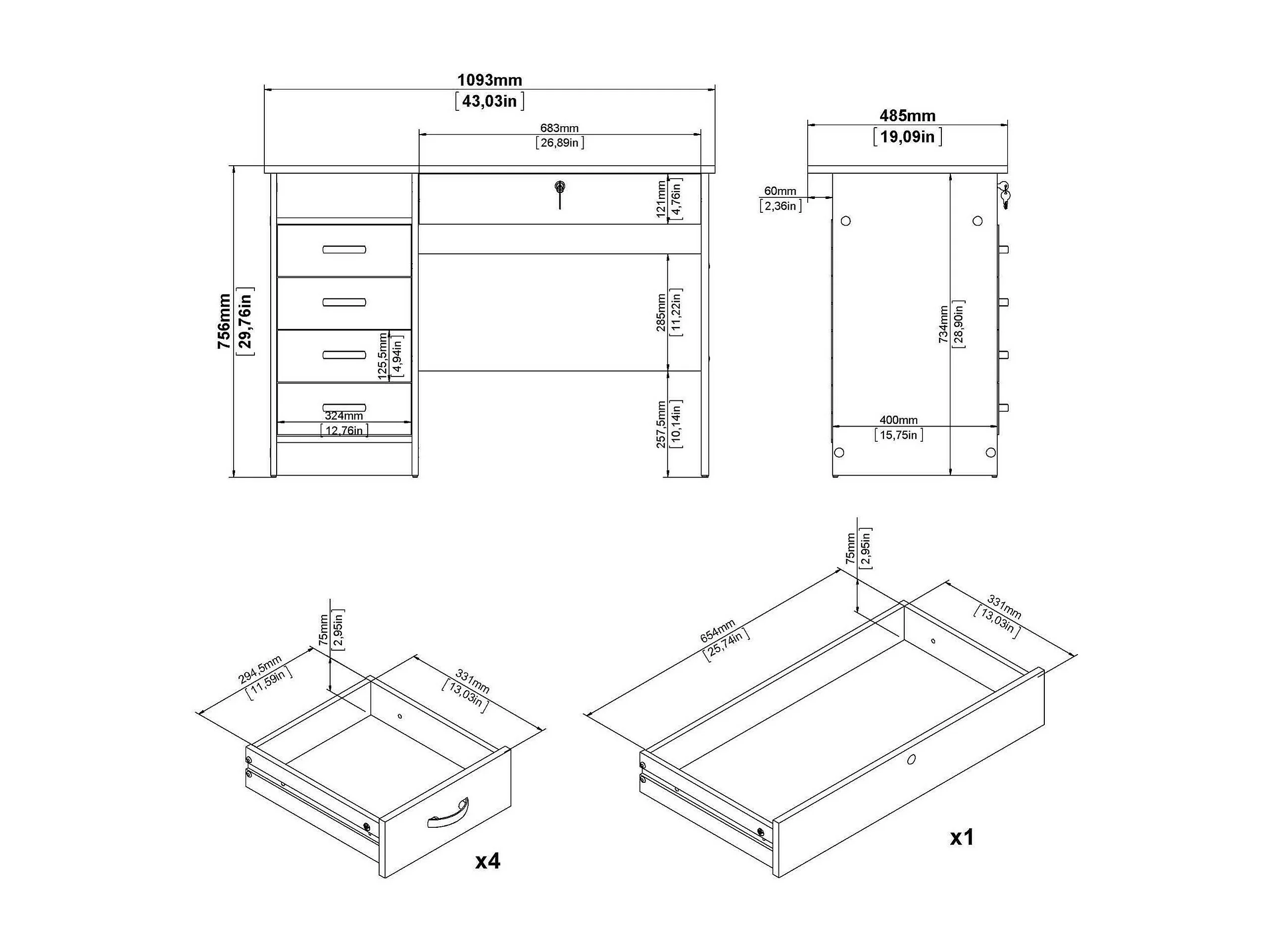 Secretária Amor, Secretária multiusos, Secretária com suporte para PC, Bancada, 109x49 h76 cm, Carvalho