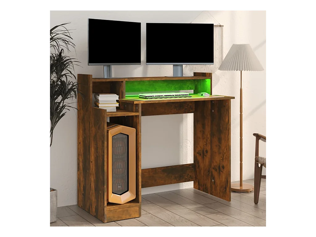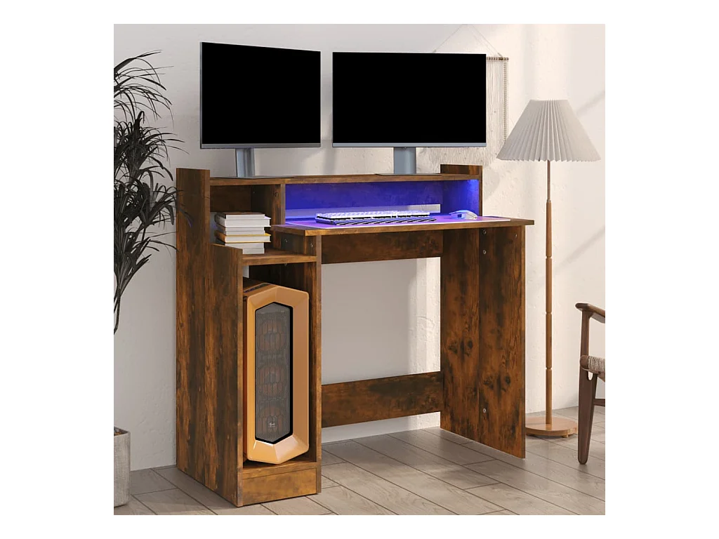 Secretária c/ LEDs 97x45x90cm derivados madeira carvalho fumado PT873870