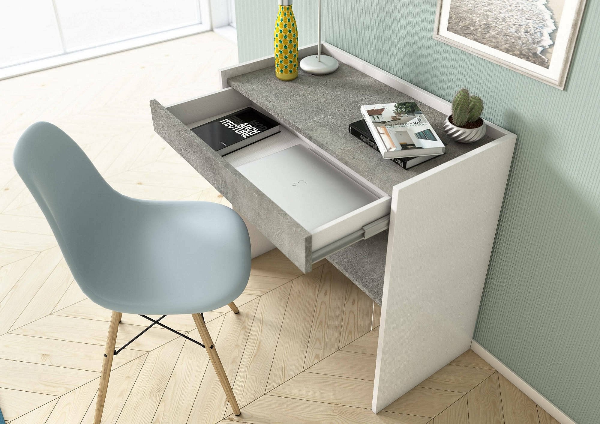 Secretária Clematide, Secretária moderna com gaveta, Mesa de estudo ou escritório, Porta-livros para PC, 100% Fabricado em Itália, 80x40h79 cm, Branco e Cimento