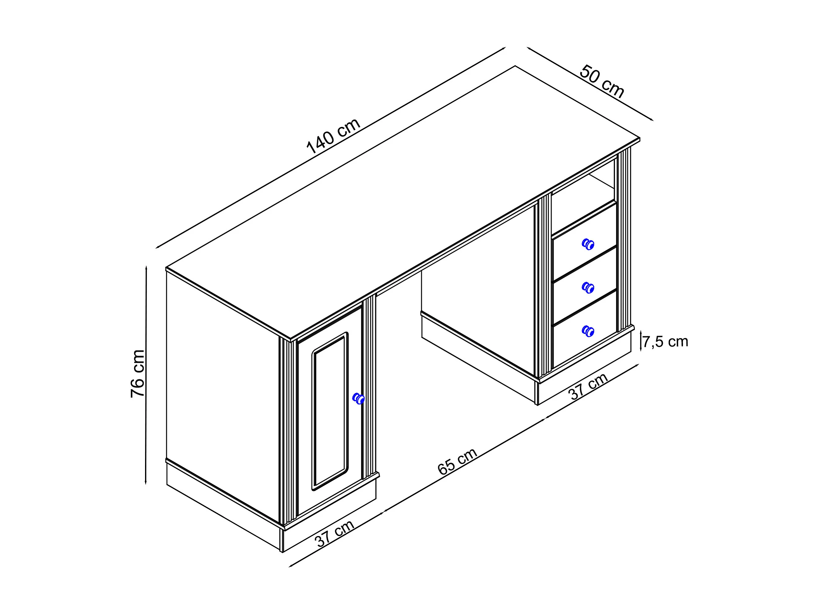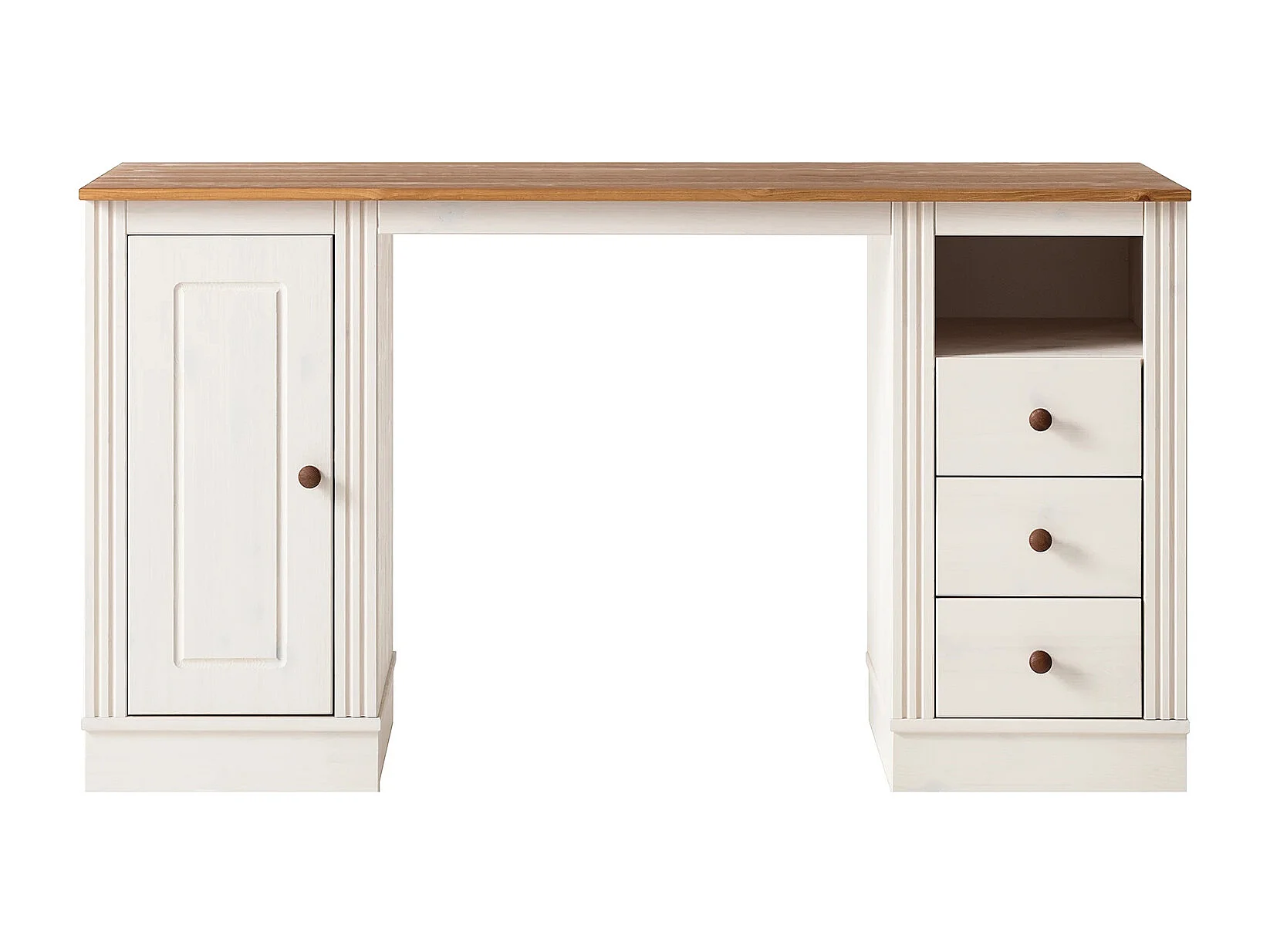 Secretária com 2 gavetas em MDF preto e tampo em pinho natural