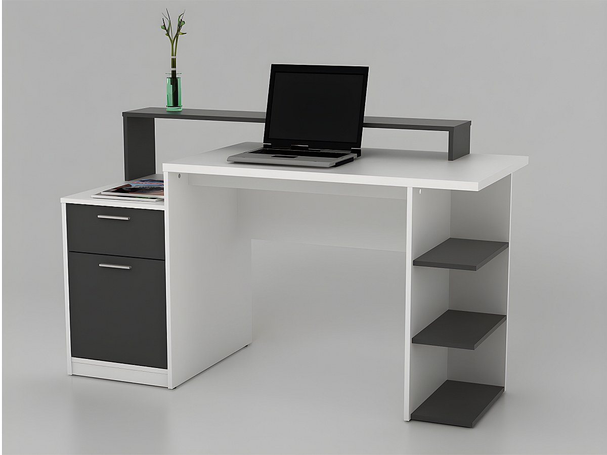 Através deste posto de trabalho funcional composto por várias estantes e espaços de arrumação, poderá instalar os seus haveres, tal como deseja. E para o toque design, deposite confiança na sua estante sobreelevada, que lhe permitirá expor os seus objetos decorativos.