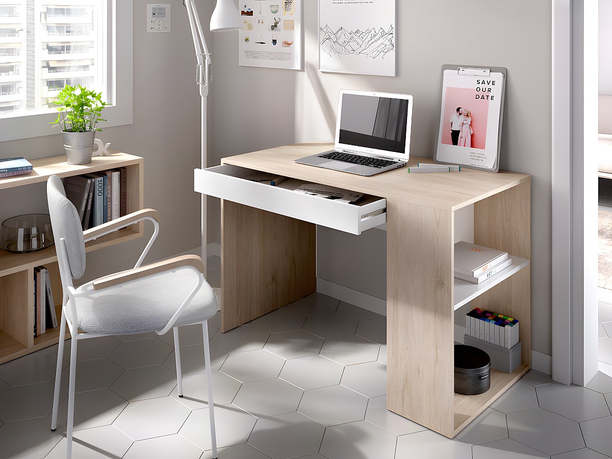 Secretária com espaços de arrumação disponível em Carvalho e Branco - INES