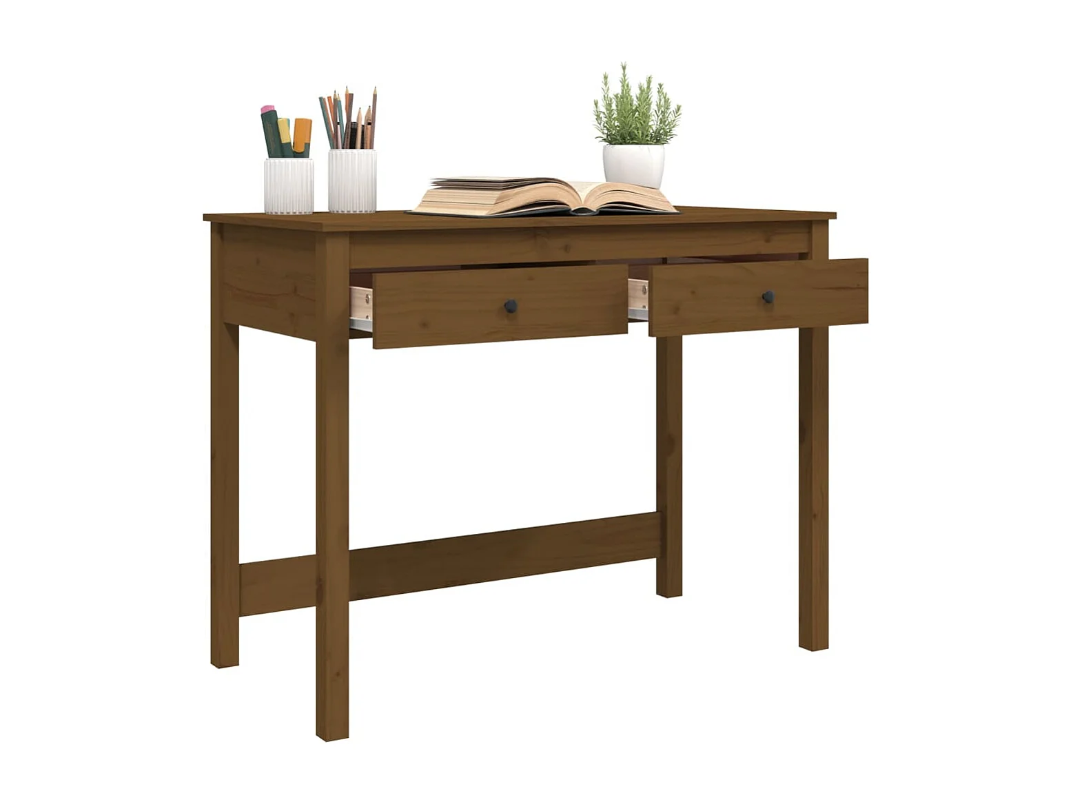 Secretária com gavetas 100x50x78 cm pinho maciço castanho-mel