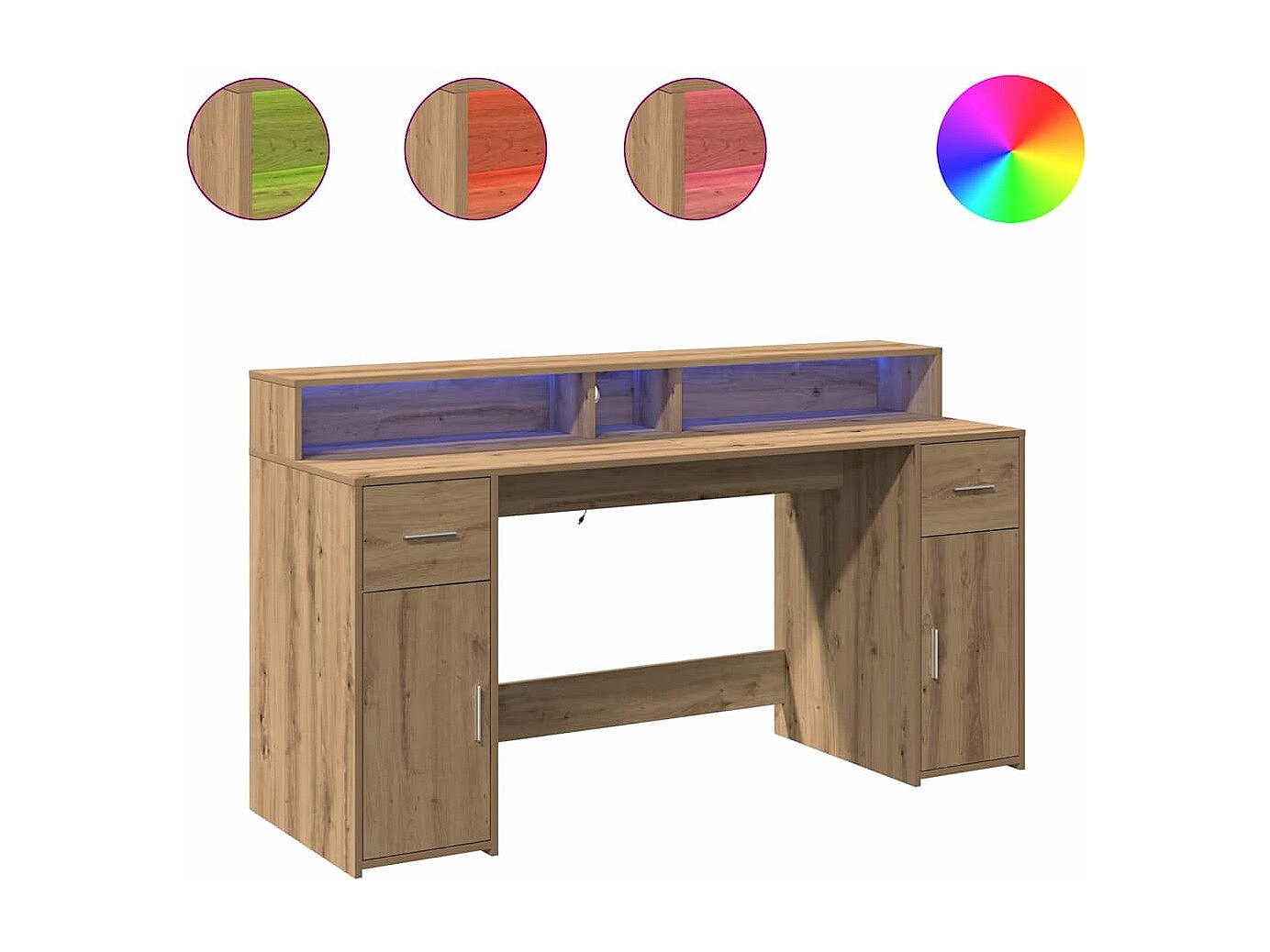 Secretária com luzes LED derivados de madeira carvalho artisiano