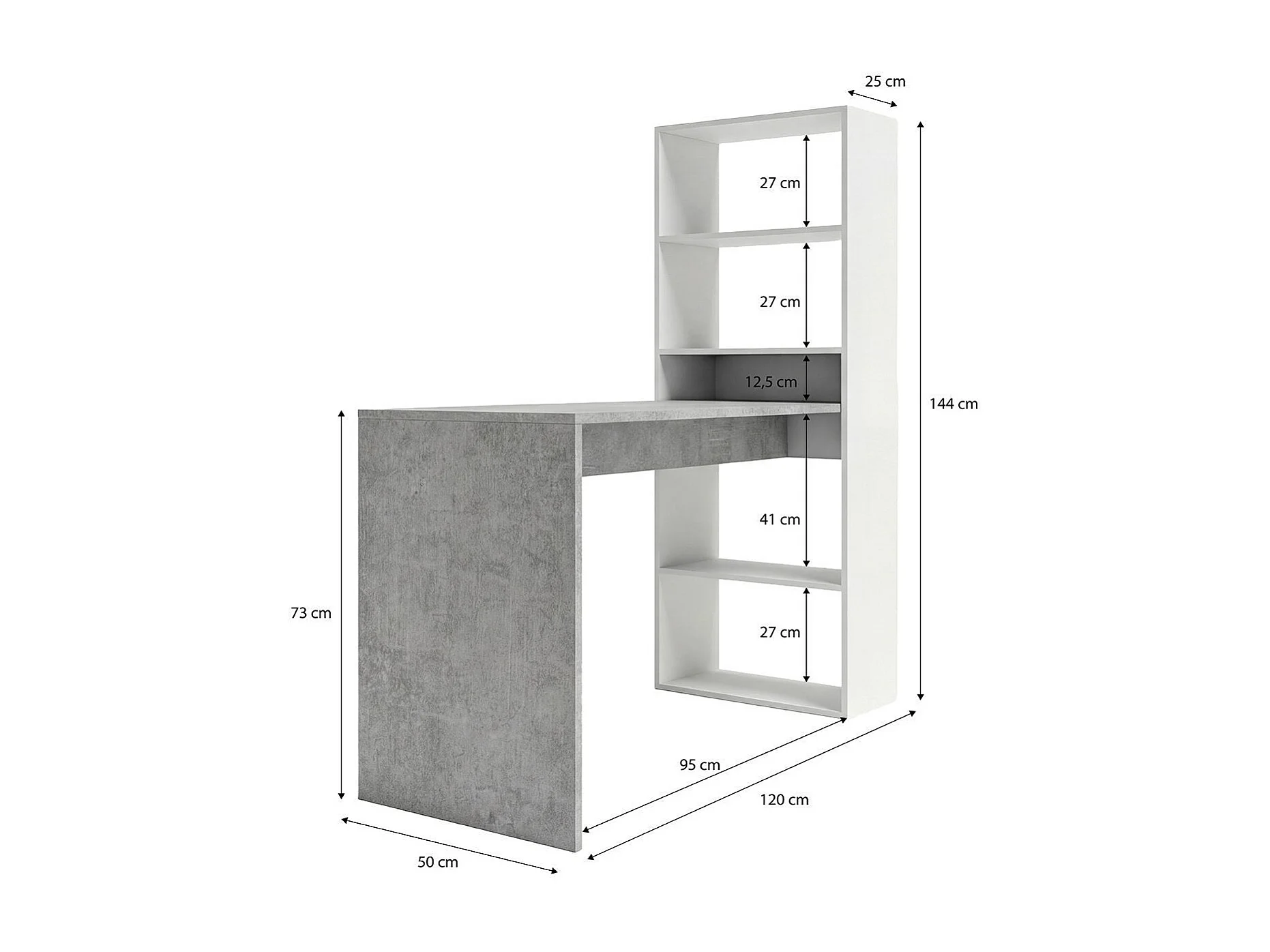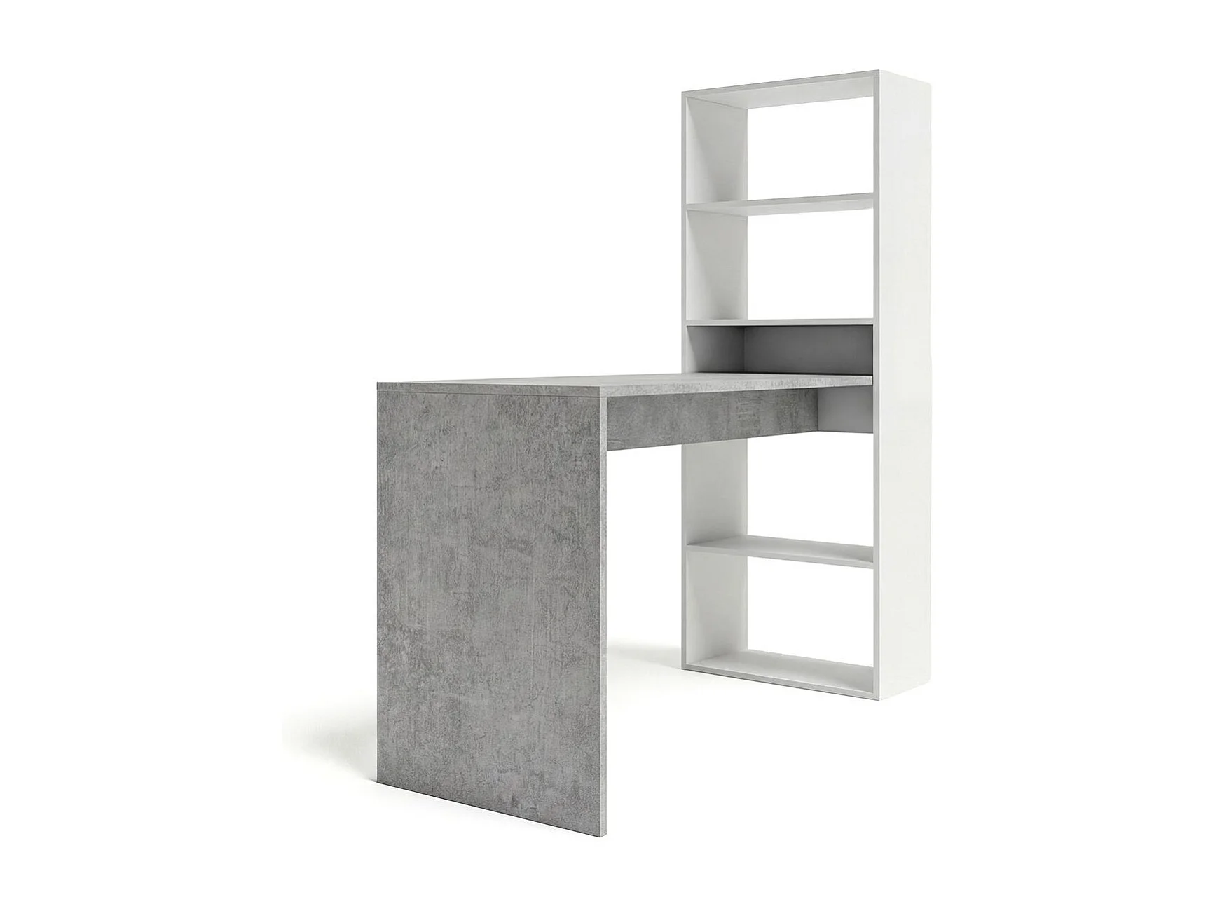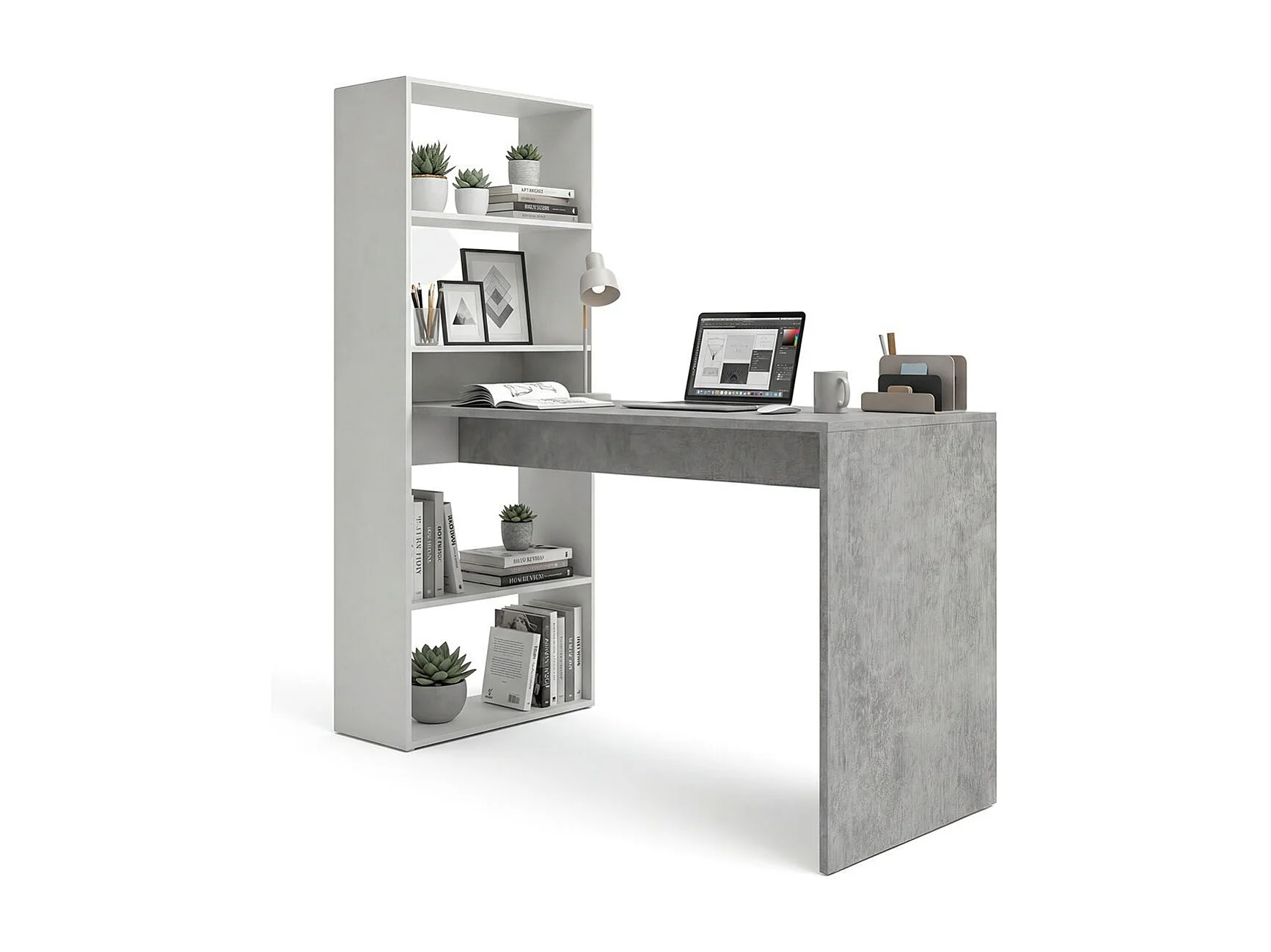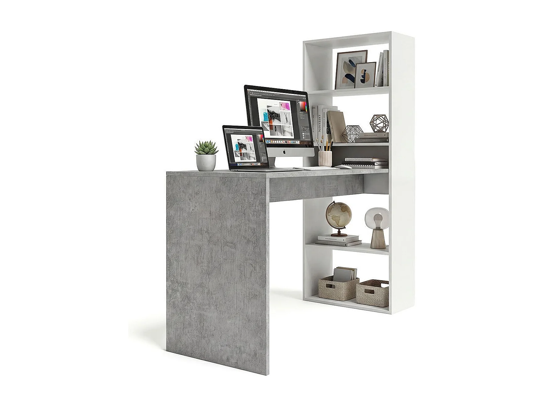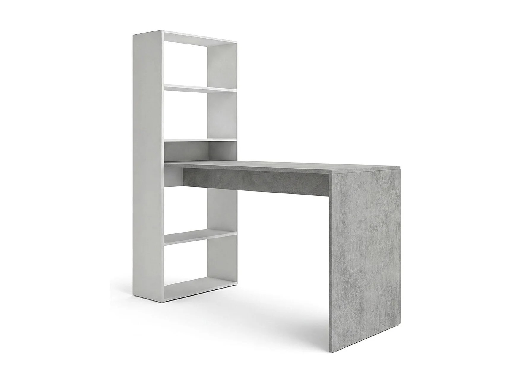 Secretária Cosmic com prateleiras Branco Artik (Branco mate) - Cinzento Cimento