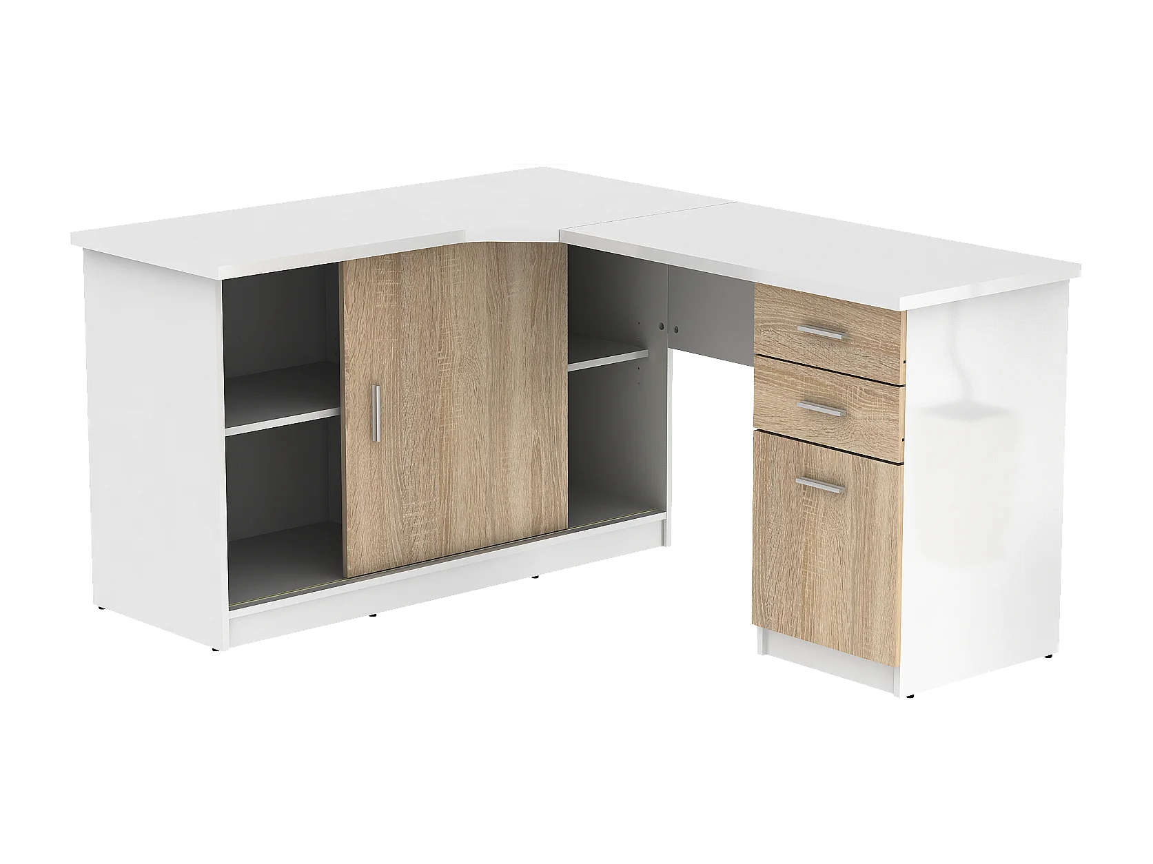 Secretária com 2 portas e 2 gavetas cor branco e carvalho - NORWY