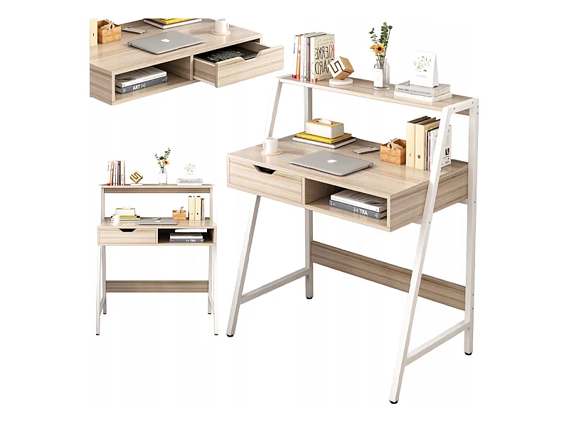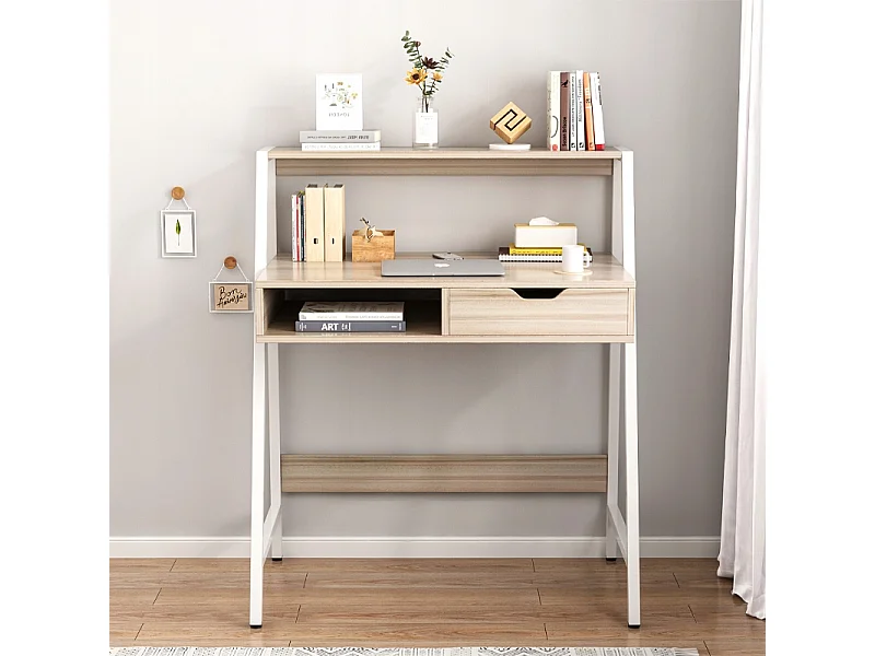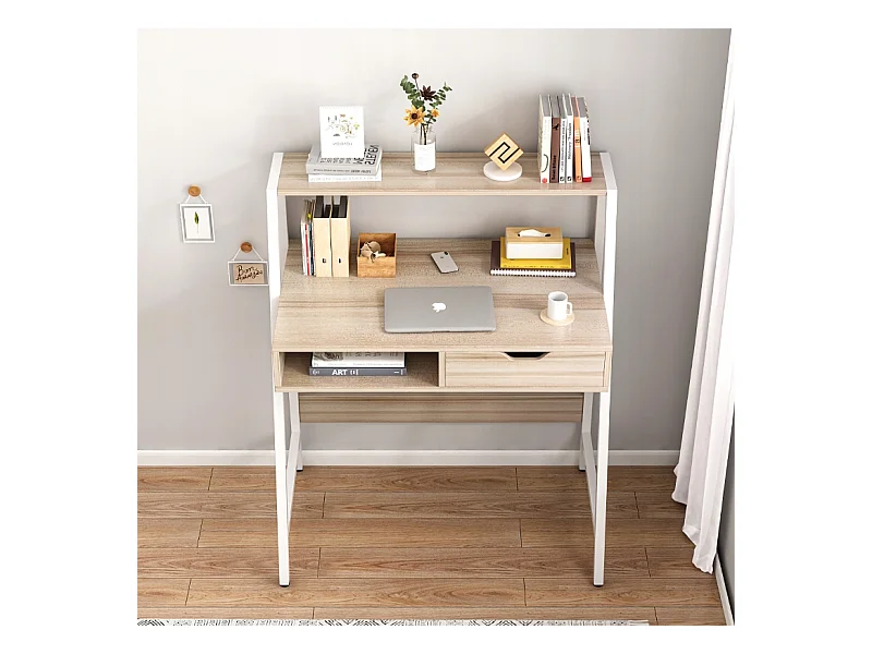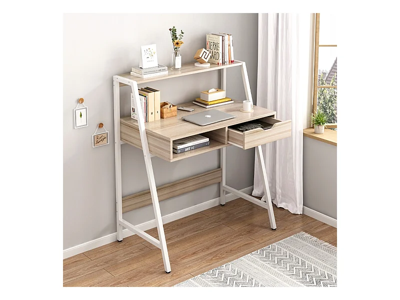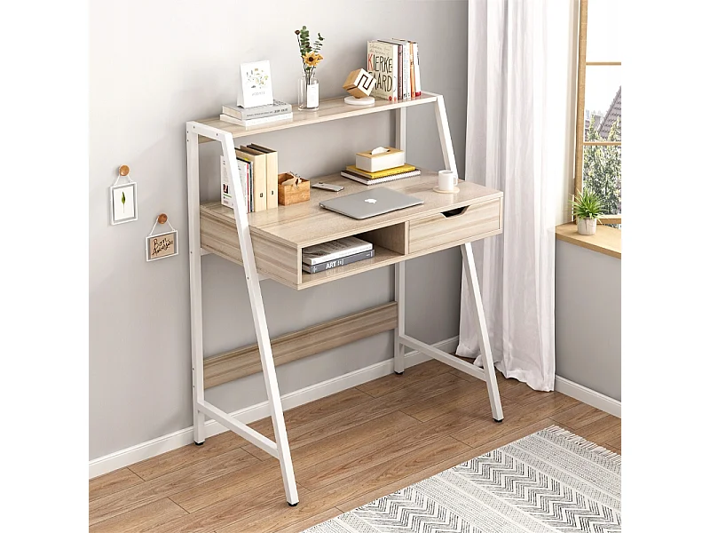 Secretária de Computador Carvalho Claro Estilo Loft Industrial com Gaveta - Moderna e Funcional